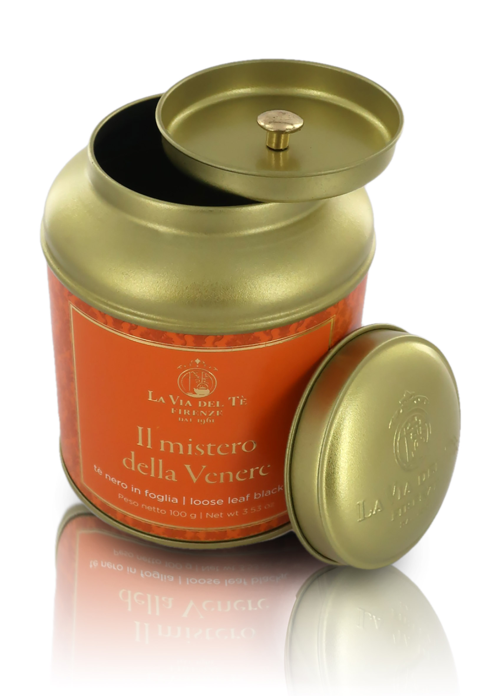 "Il Mistero della Venere", Tè Nero Indiano Aromatizzato alla Frutta e ai Fiori, Barattolo di Latta, 100g