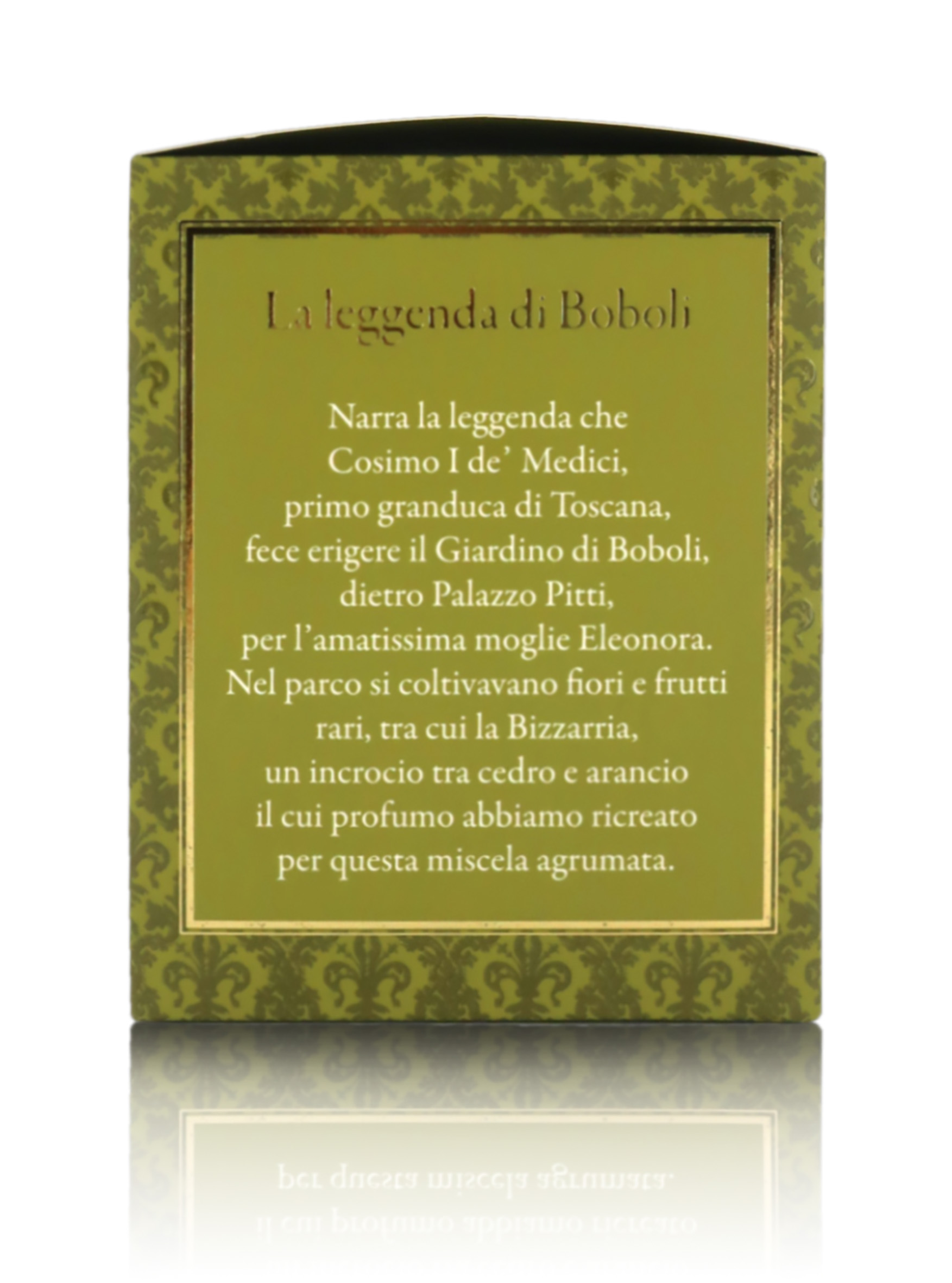 Tè in foglia sfuso realizzato dai maestri del te (tea blender) de La Via del Tè, che si sono ispirati alla bizzaria (mix tra cedro e arancio), una tra le specie rare che popolavano il giardino di Boboli. La miscela è a base di tè nero indiano, arricchito con fiori di lavanda, scorza d'arancia e fiori di arancio. In tazza, la bevanda è di colore arancio scuro, con sapore pieno e morbido, dal piacevole e fresco retrogusto di agrumi (cedro, arancio).