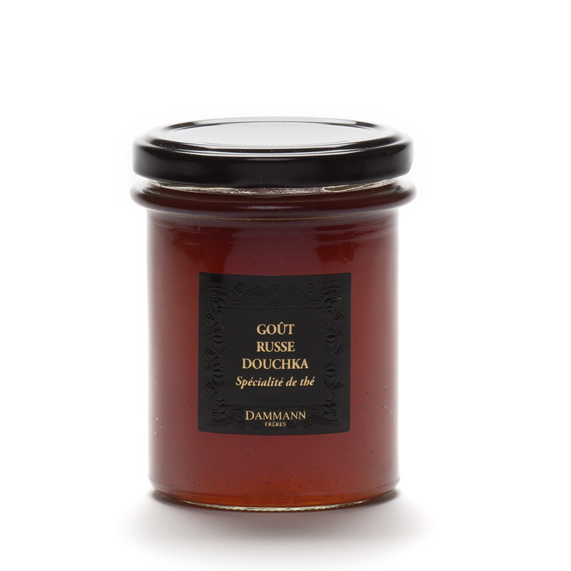 La gelatina è a base di miscela di tè aromatizzata Goût Russe Douchka. Ottima per preparare tartine gourmet, questa gelatina spalmabile vanta vivaci note agrumate. Peso netto: 235g.