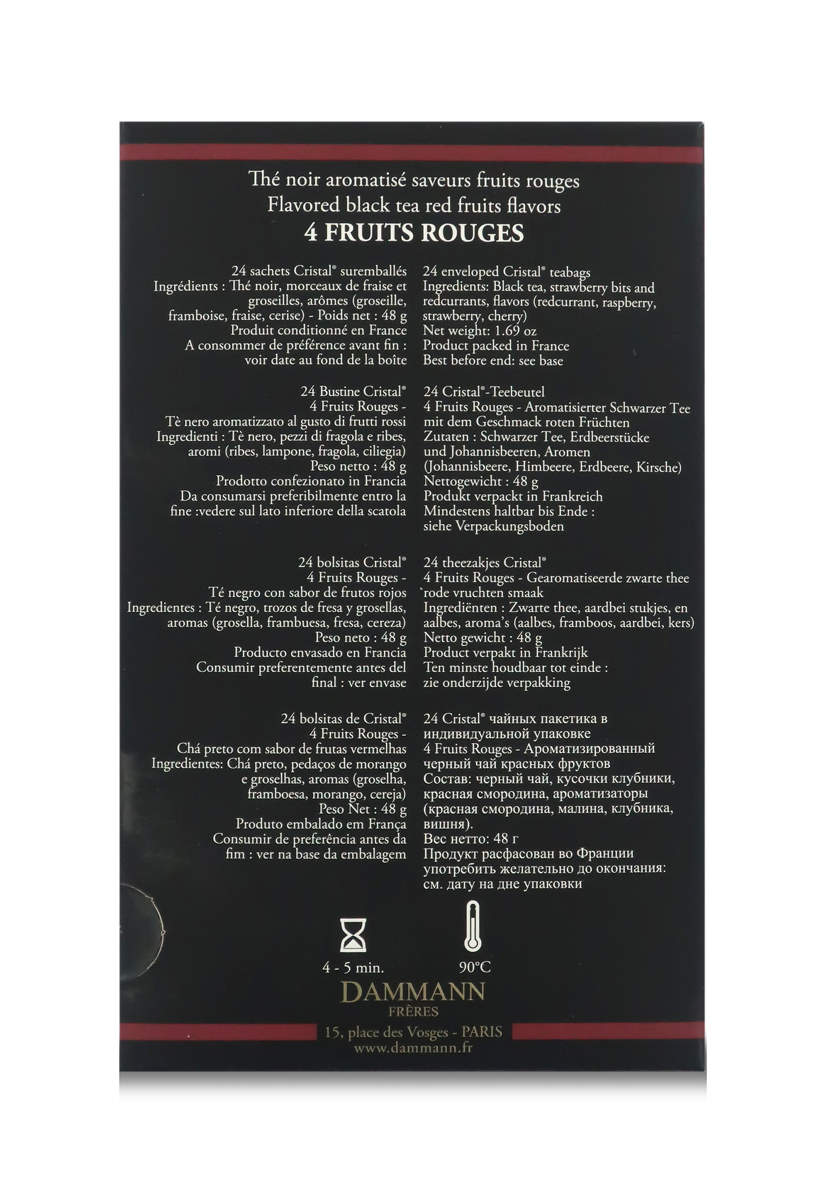 Il tè nero 4 Fruits Rouges è contenuto in esclusive e pratiche bustine "Cristal" incartate singolarmente.