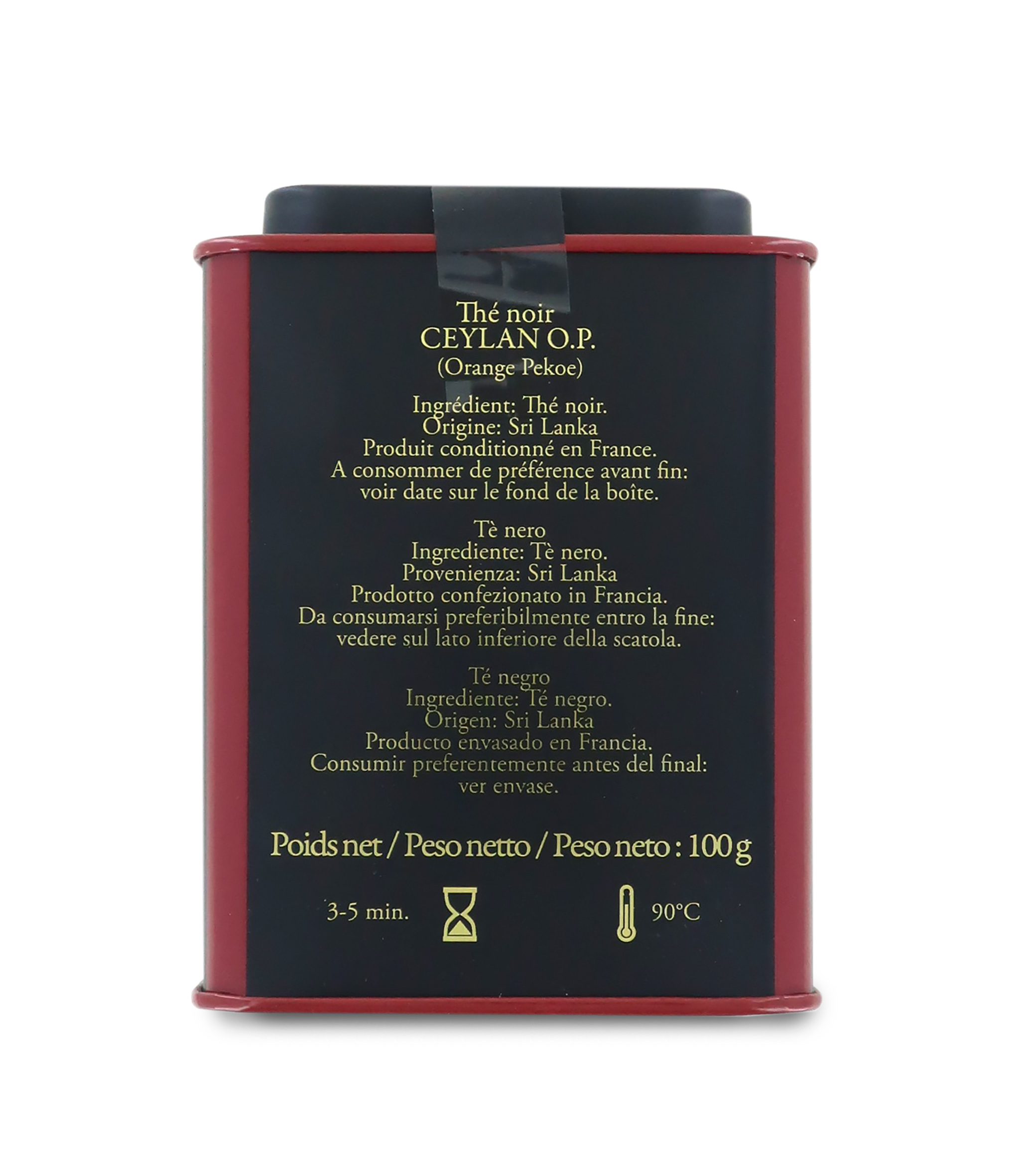Dammann Ceylan O.P., Tè Nero Ceylon dello Sri Lanka, Tè Nero Qualità Orange Pekoe, Perfetto Tè per il Pomeriggio, Tè Sfuso in Latta, 100 Grammi, Dammann Frères