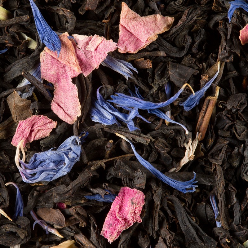 Ingredienti: Tè nero, petali di fiori, aromi (papavero (lampone, ciliegia, viola), vaniglia, mandorla amara, biscotto).
