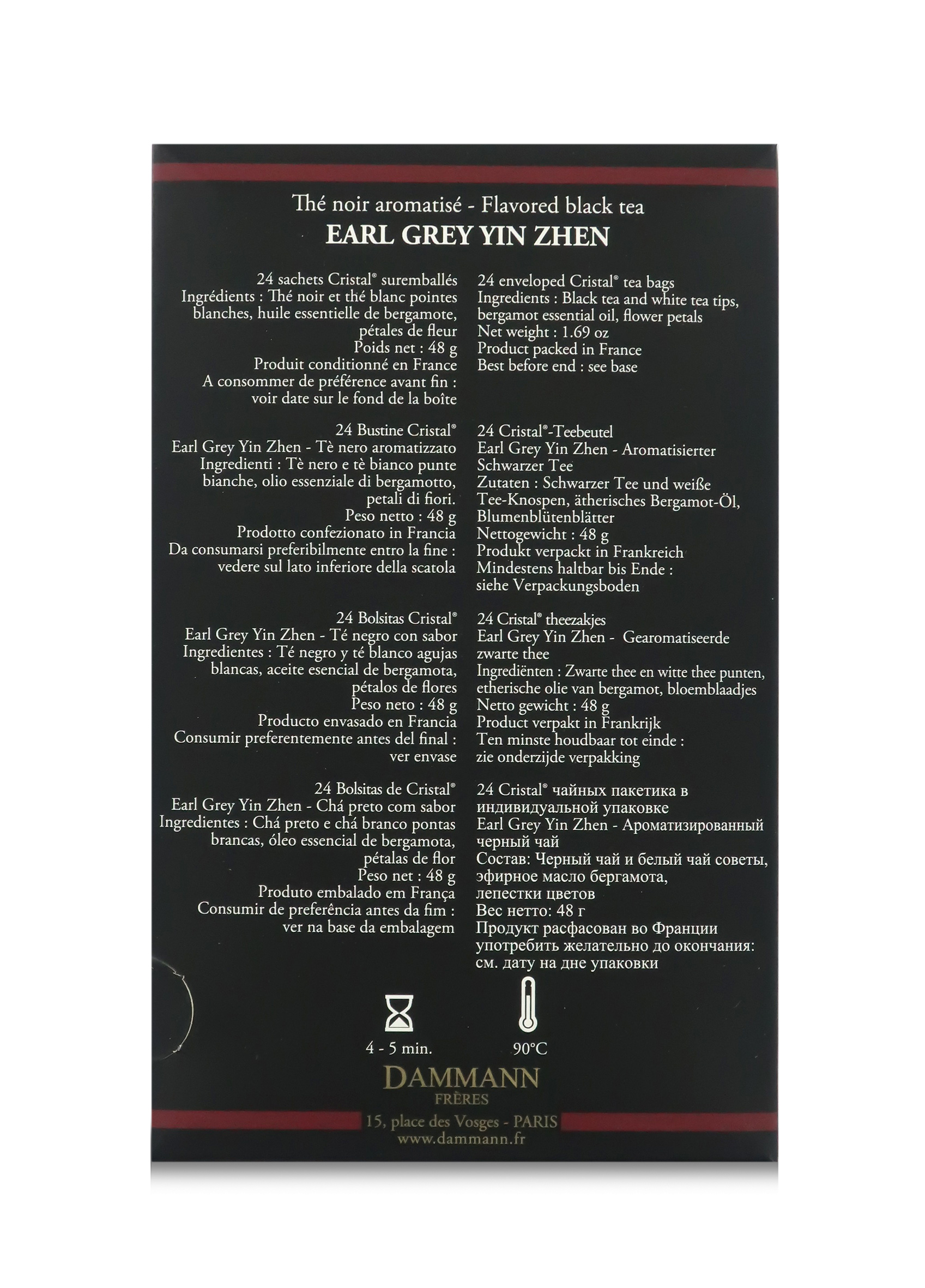 L'Earl Grey Yin Zhen di Dammann Frères è contenuto in esclusive e pratiche bustine "Cristal" incartate singolarmente.