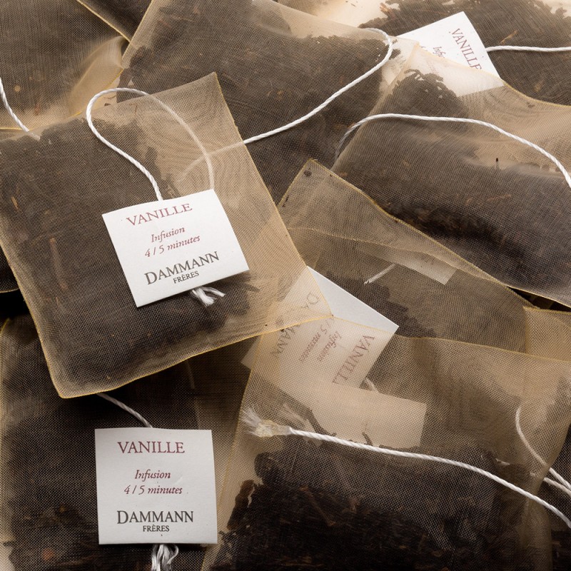 Il tè nero Vanille è contenuto in esclusive e pratiche bustine "Cristal" incartate singolarmente.