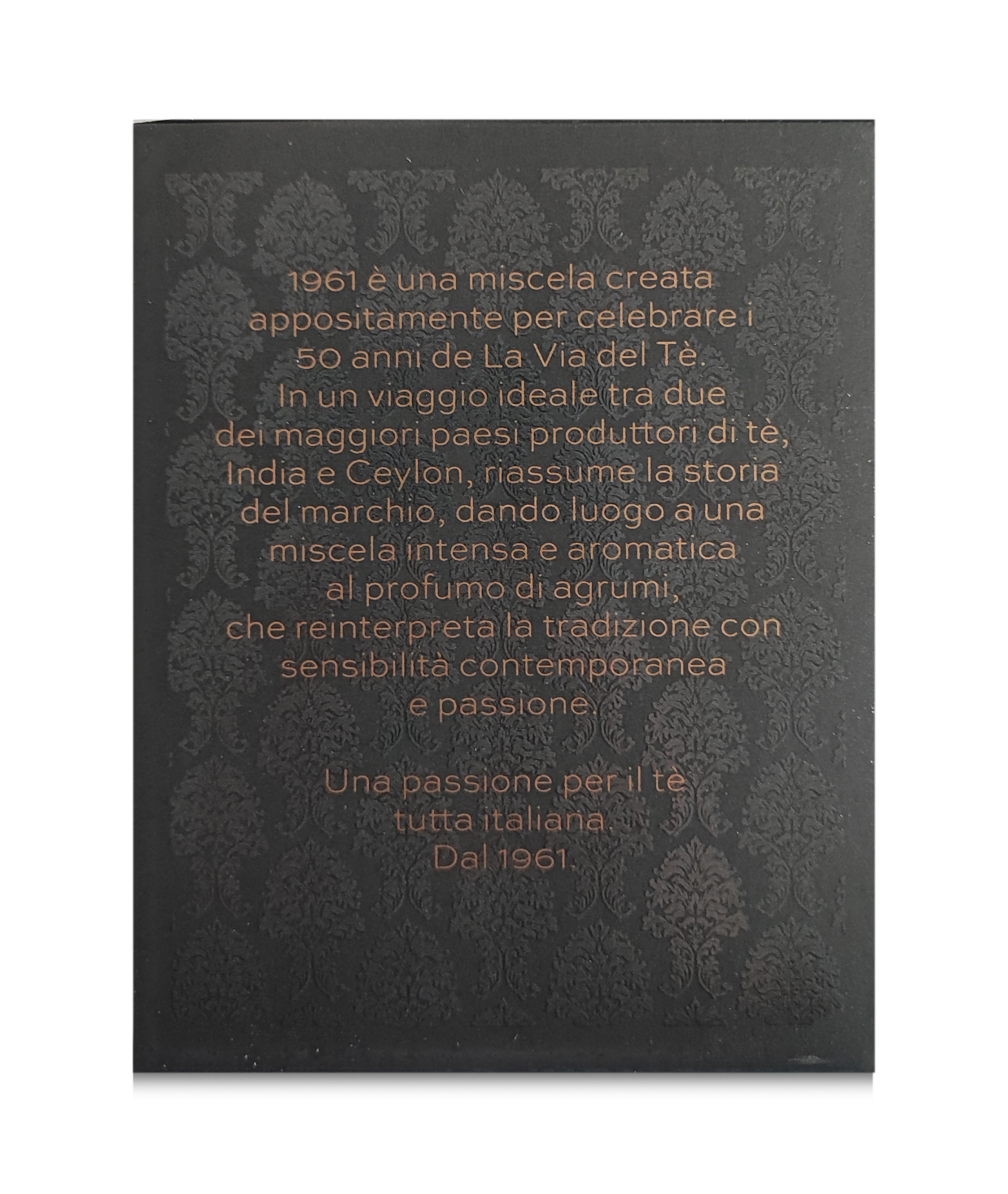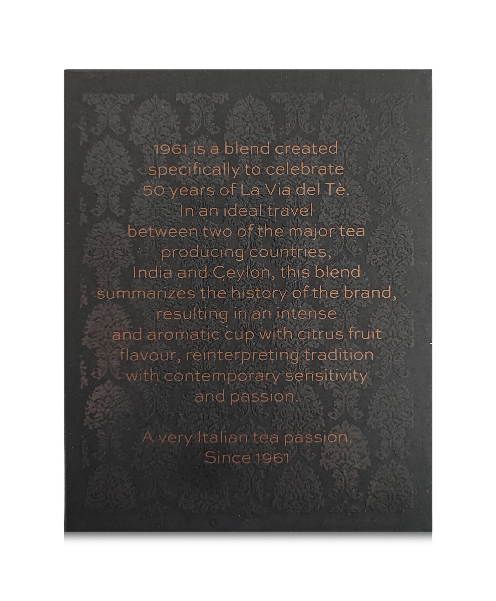 Miscela di tè neri in foglia intera che commemora l'anno di fondazione e i 50 anni di vita de La Via del Tè. Rappresenta un viaggio in due dei maggiori paesi produttori di tè (India e Ceylon). In tazza, la bevanda ottenuta è intensa e aromatica, al profumo di agrumi, ed è una reinterpretazione della tradizione.