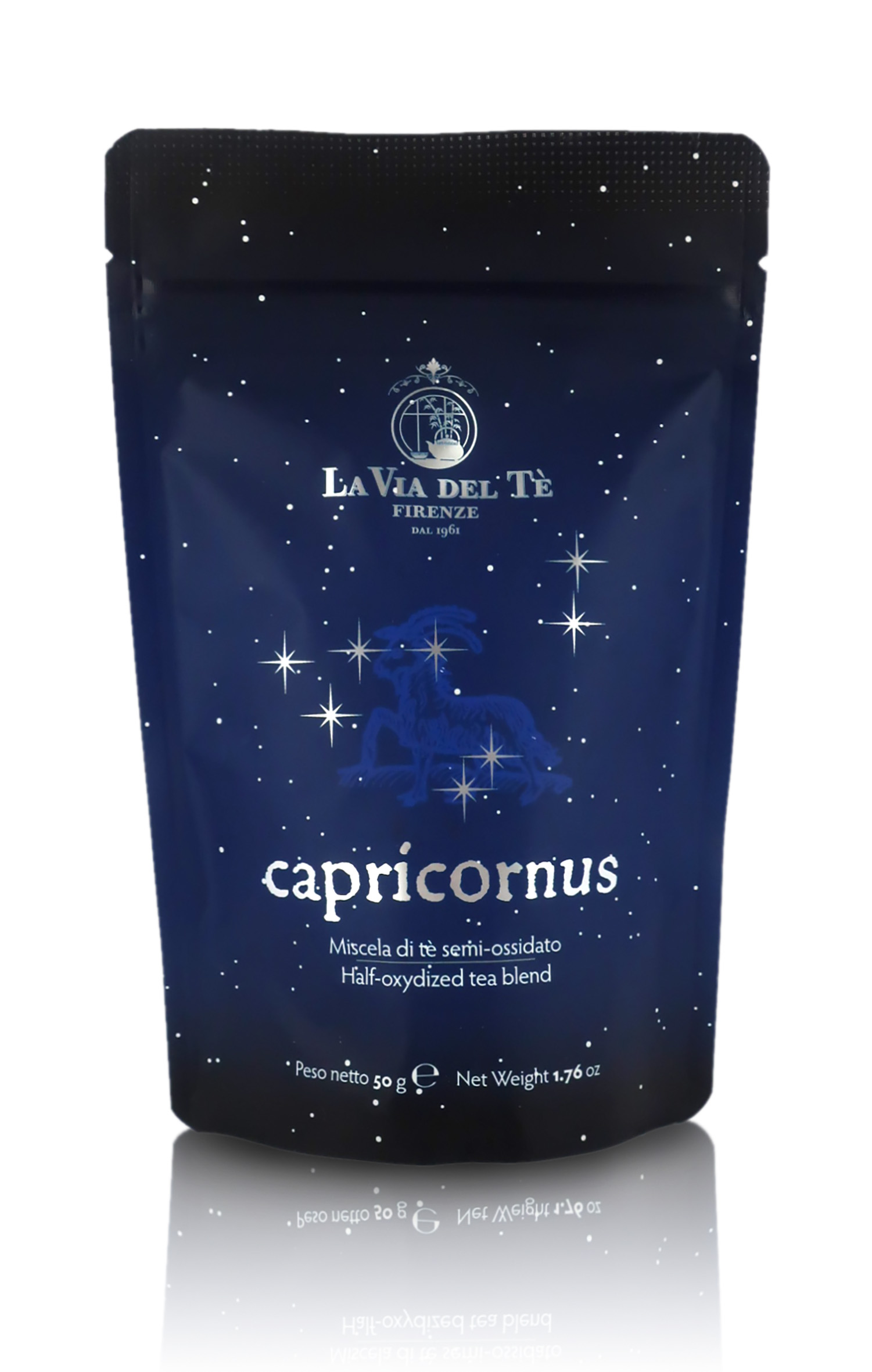 Miscela sfusa di tè semi-ossidato Oolong, piacevolmente profumata, dedicata al segno del Capricorno. I nati sotto il segno del Capricorno (22 Dicembre-20 Gennaio), governati dagli influssi del Pianeta Saturno, si distinguono per lealtà e pazienza. Di carattere introspettivo, preferiscono la riservatezza alle estroversione.