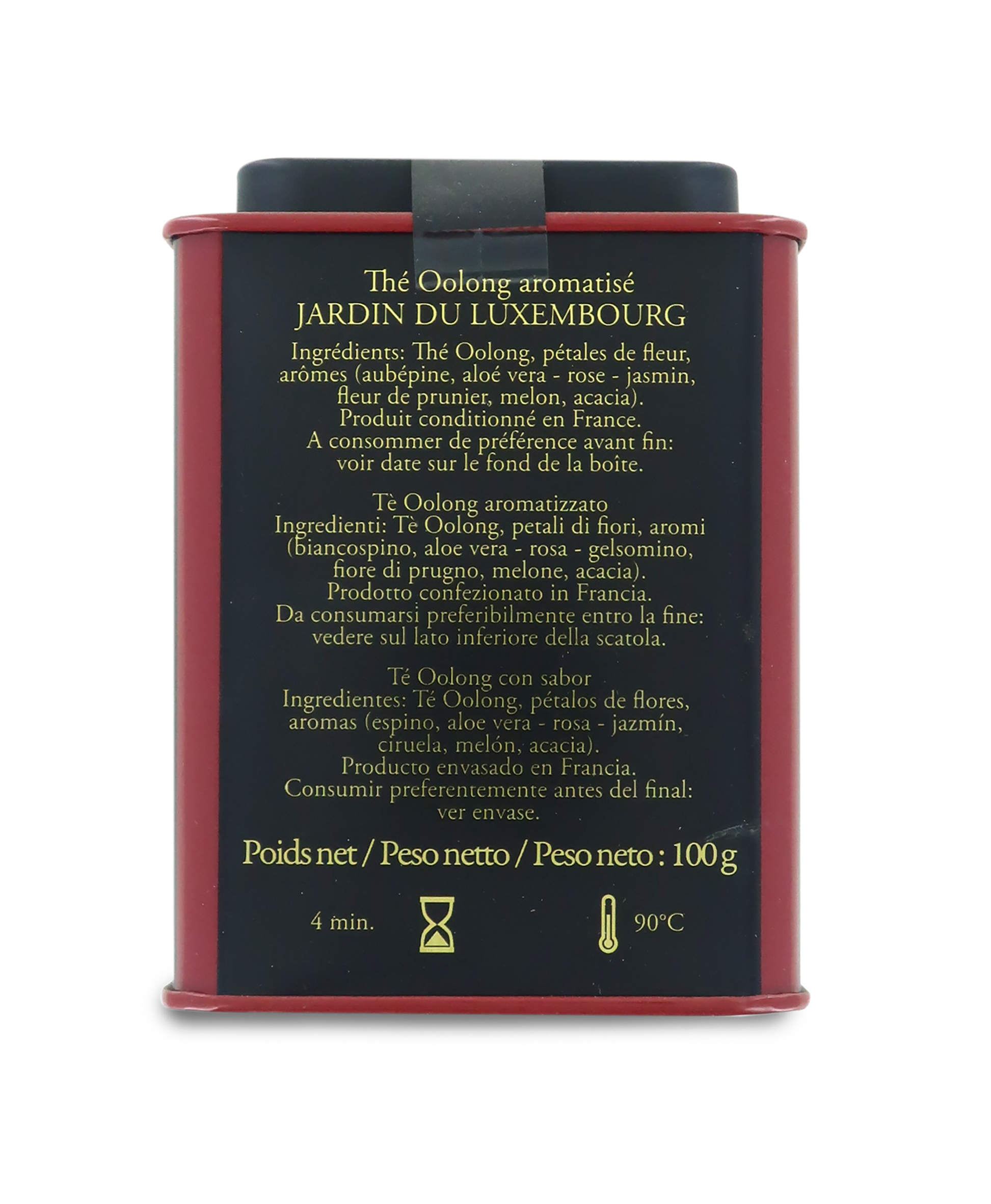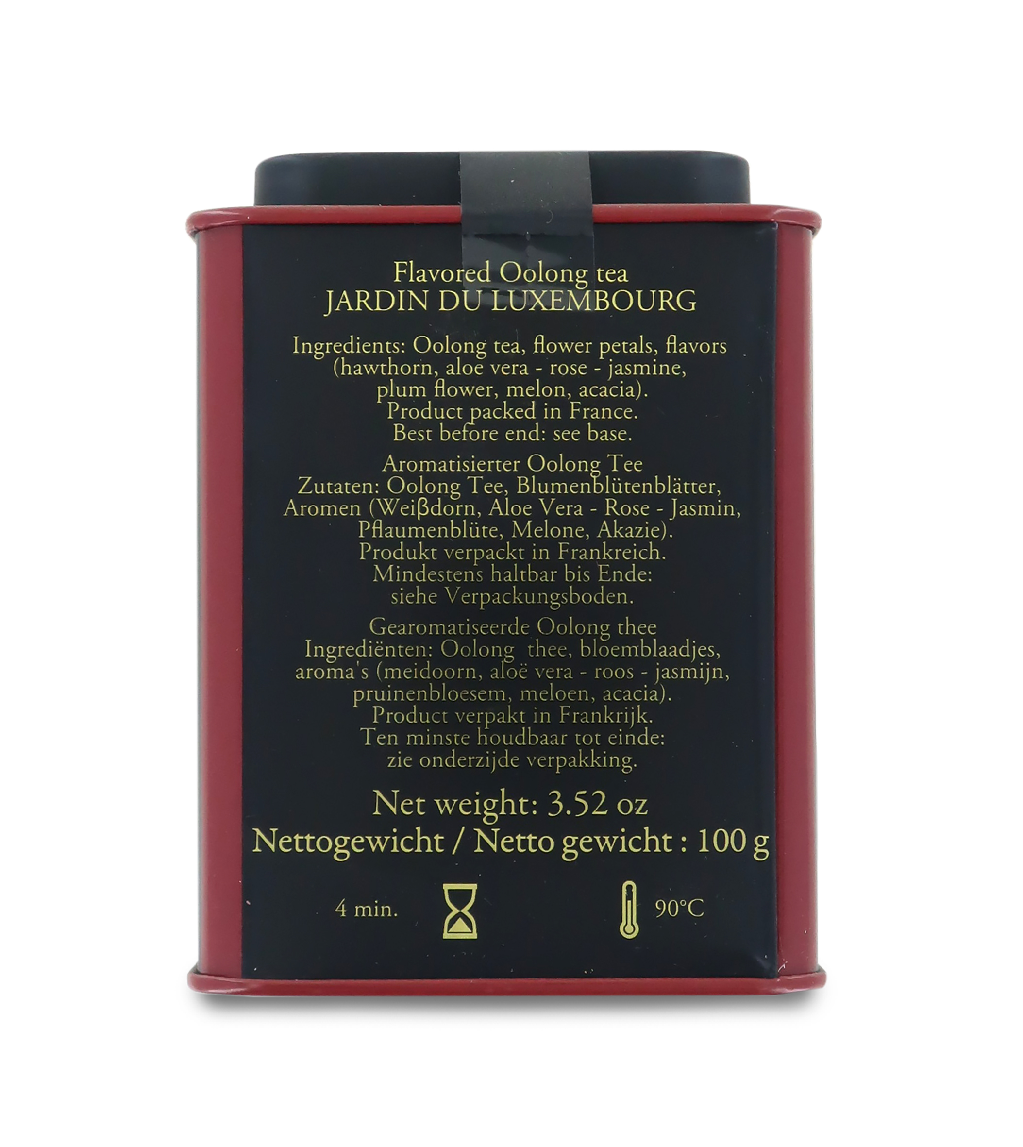 Il tè "Jardin du Luxembourg" di Dammann Frères è contenuto in un'elegantissima scatola di latta, perfetta non solo per conservare il prezioso aroma di questo tè pregiato, ma anche da regalare.
