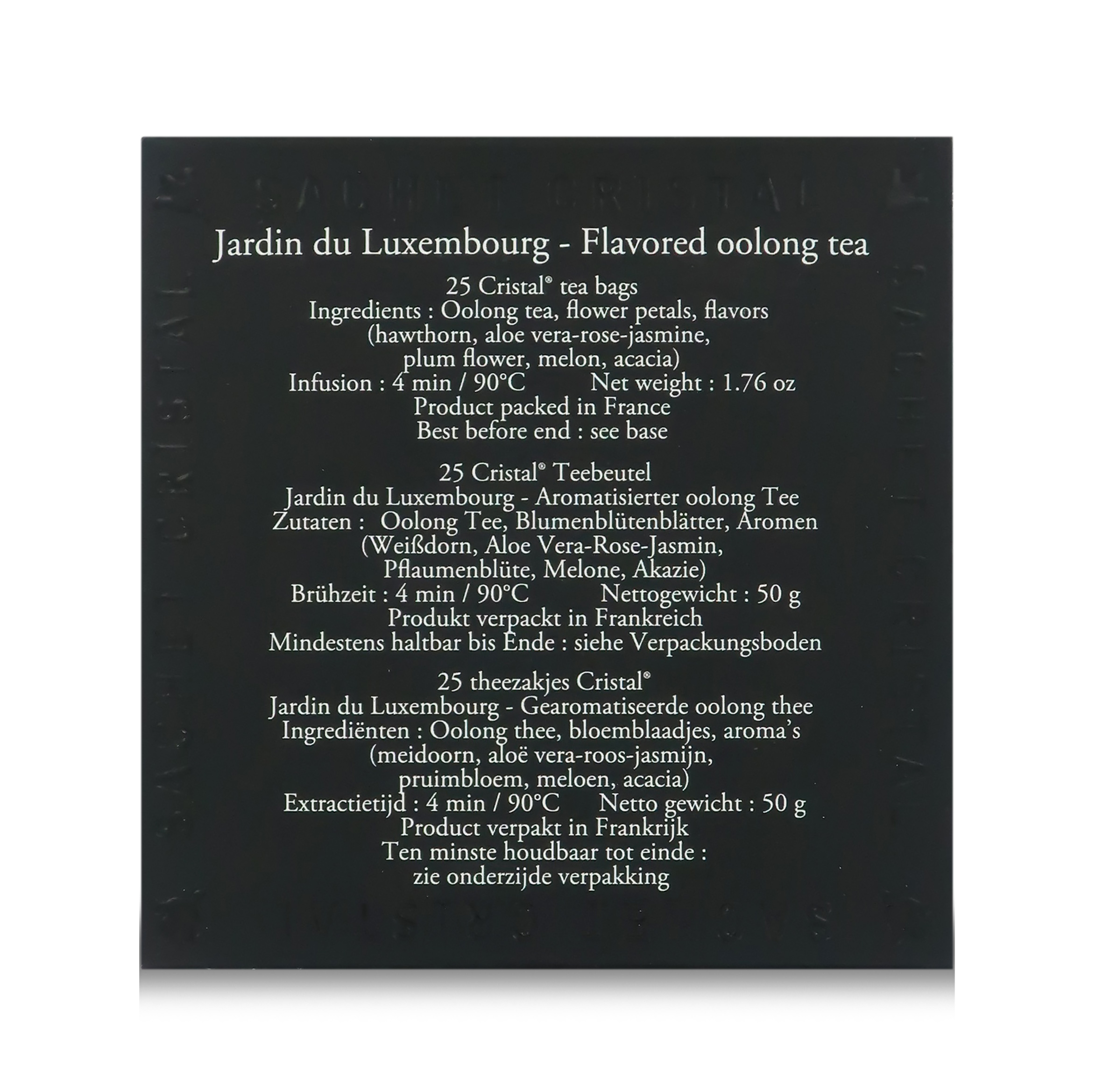 Il tè "Jardin du Luxembourg" di Dammann Frères è contenuto in esclusive e pratiche bustine "Cristal".
