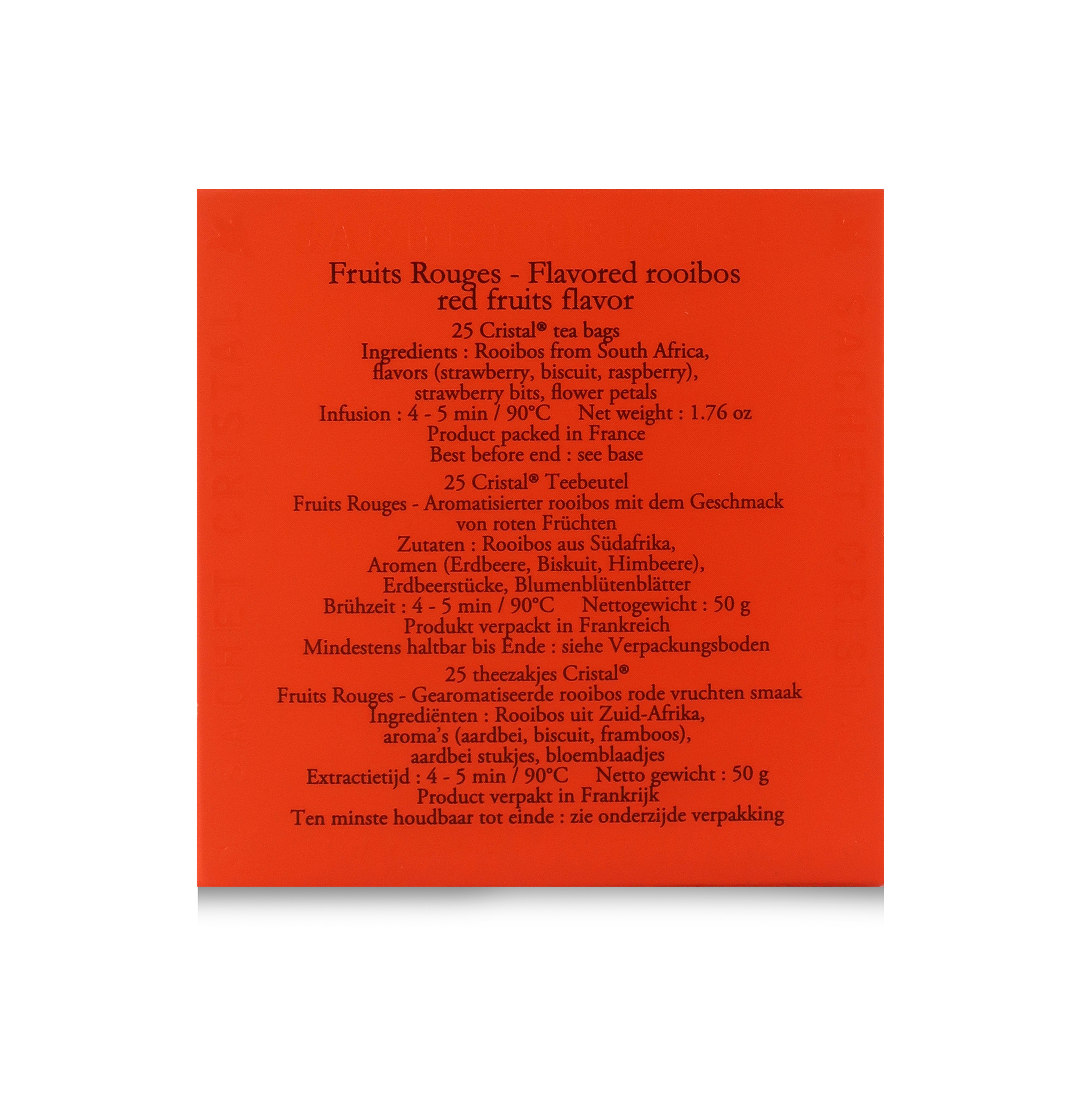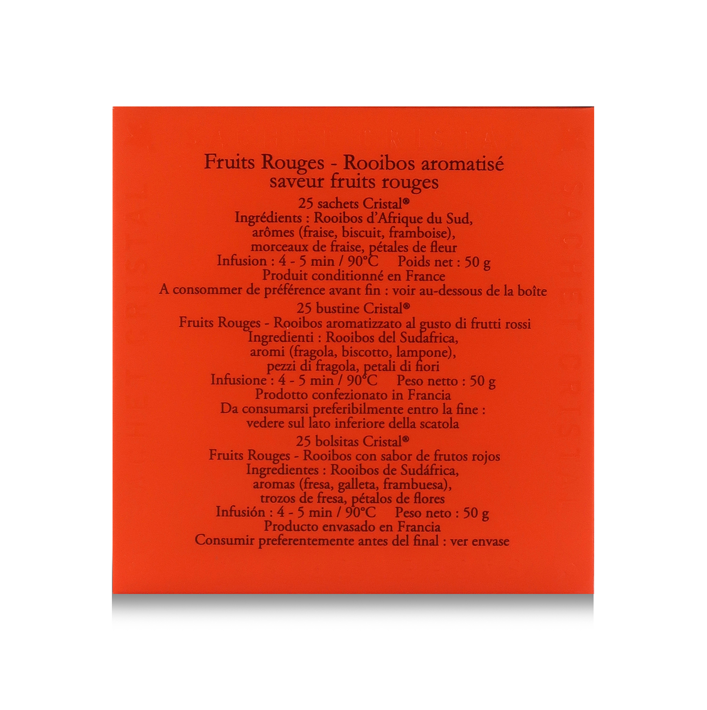 Questo rooibos ai frutti rossi di Dammann Frères è contenuto in esclusive e pratiche bustine "Cristal".