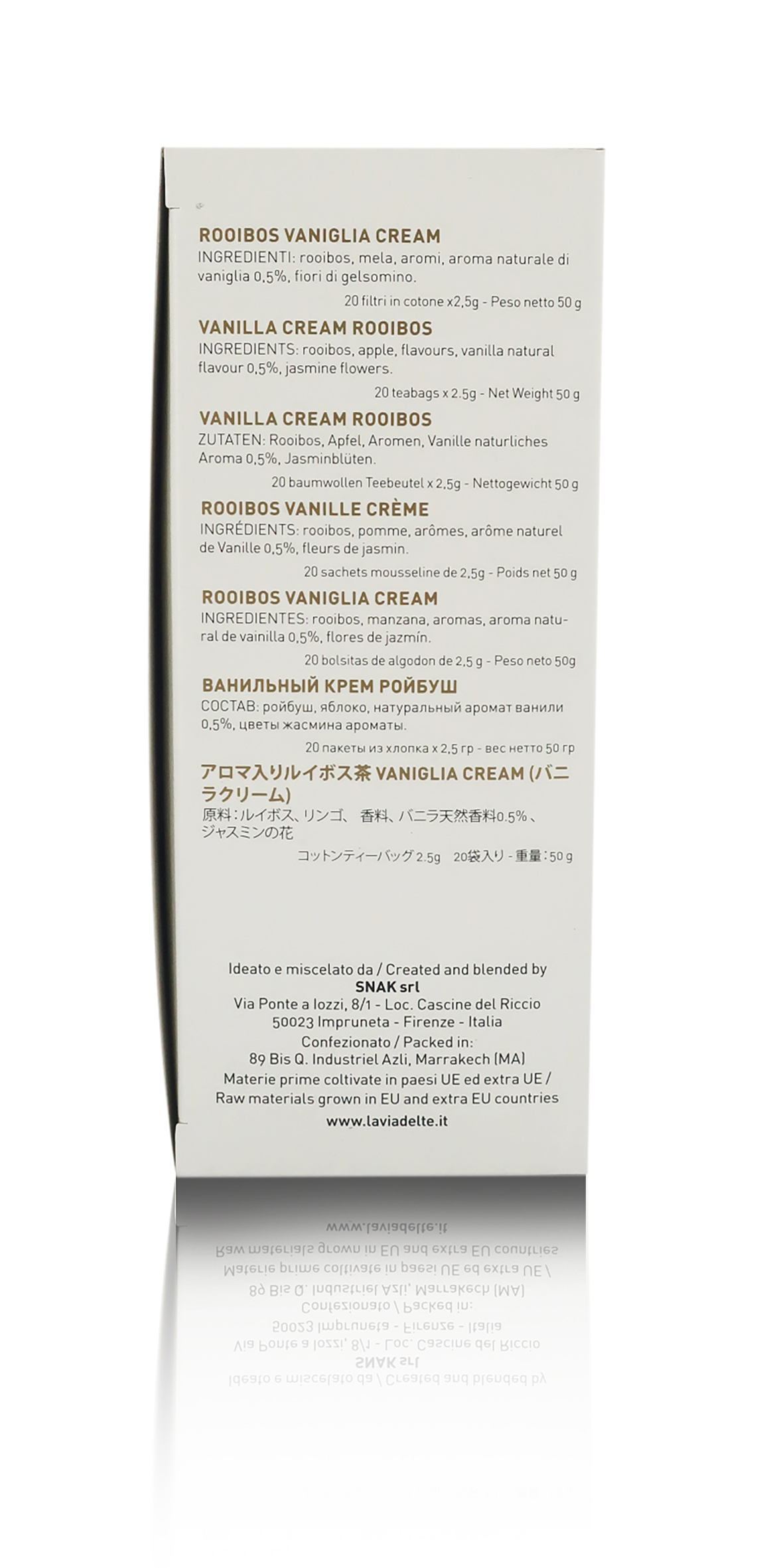 Rooibos Vaniglia Cream, Rooibos Aromatizzato alla Vaniglia, Astuccio con 20 Filtri da 2,5g - 50g