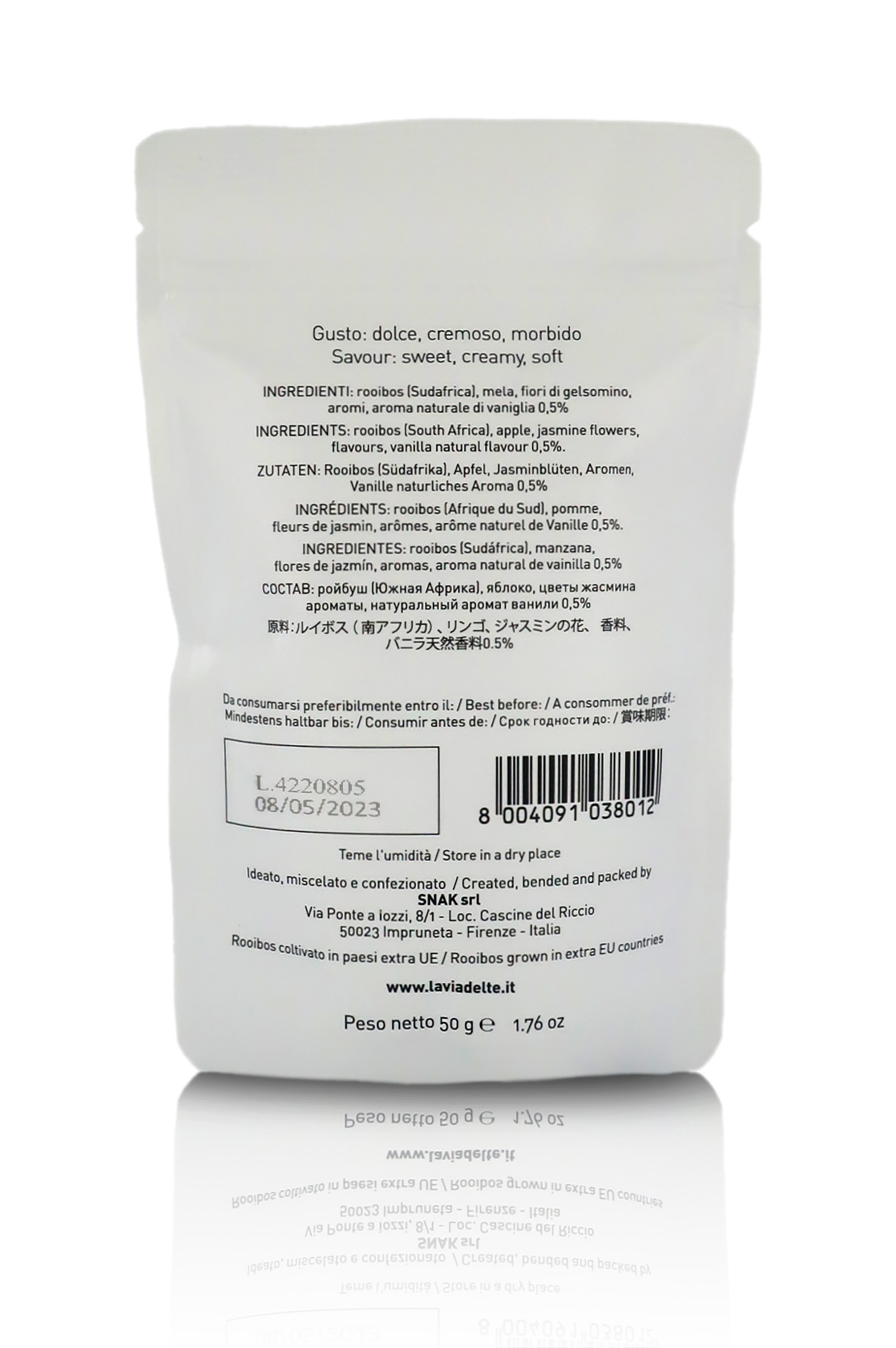 Ingredienti: Rooibos, mela, fiori di gelsomino, aromi, aroma naturale di vaniglia 0,5%.