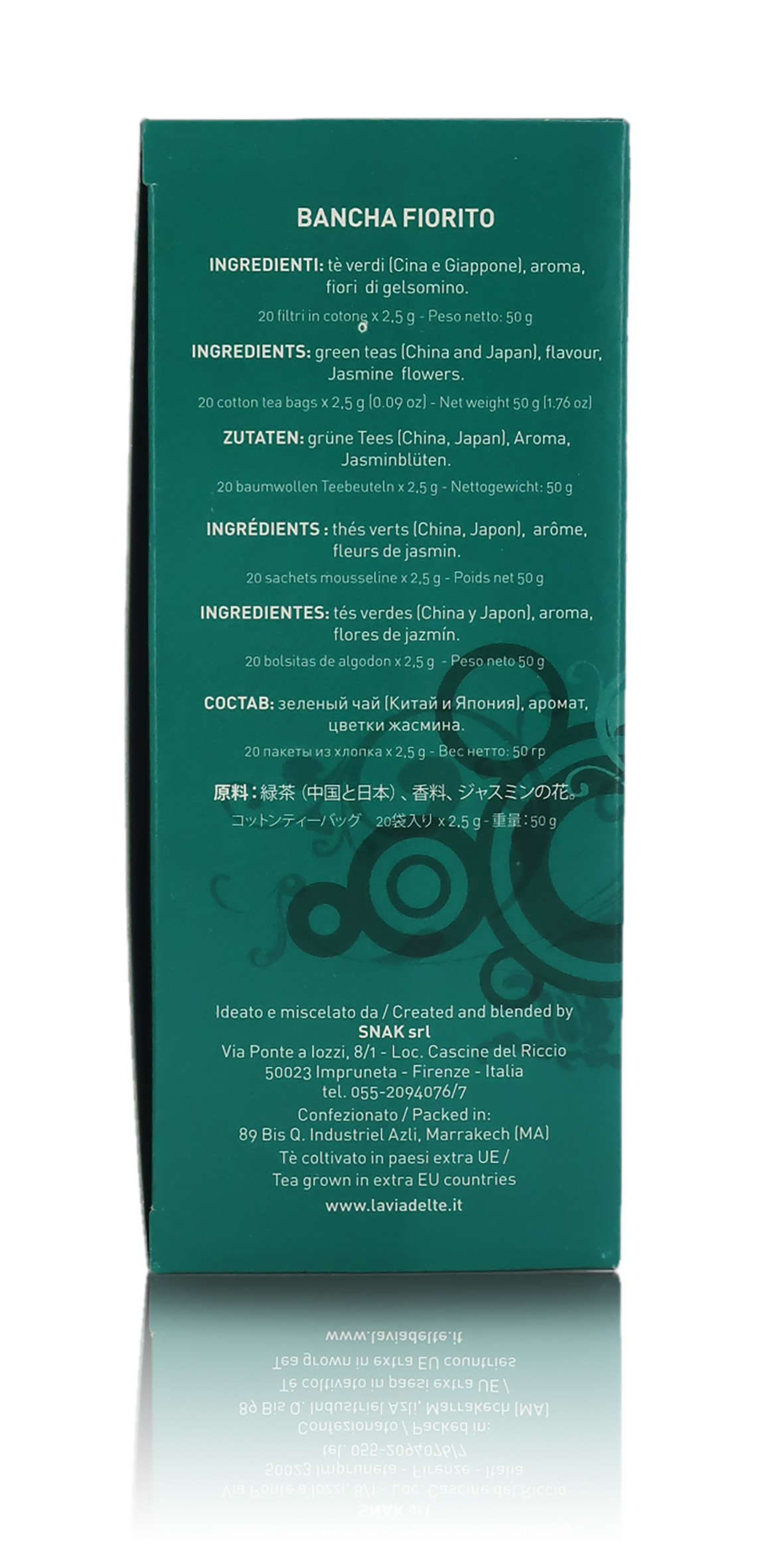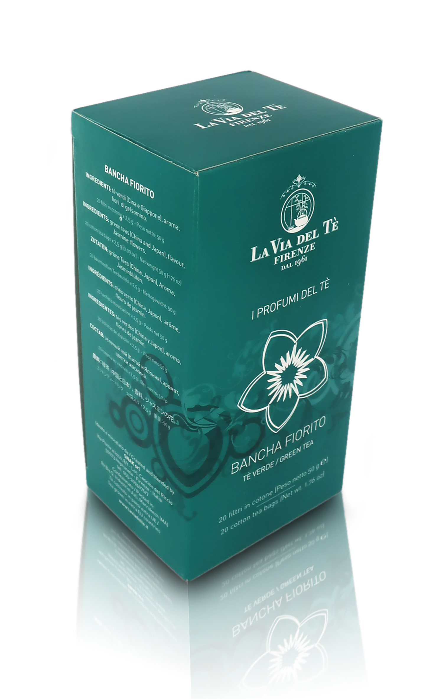 Ingredienti: Tè verde, gelsomino, fiori.