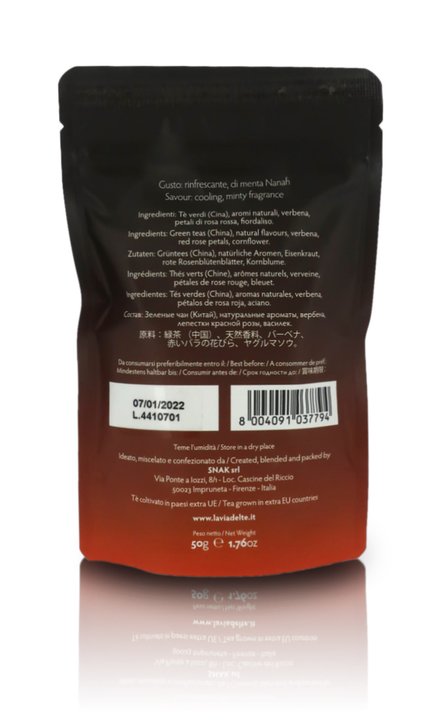 Ingredienti: tè verdi cinesi, aromi naturali, verbena, petali di rosa rossa, fiordaliso.