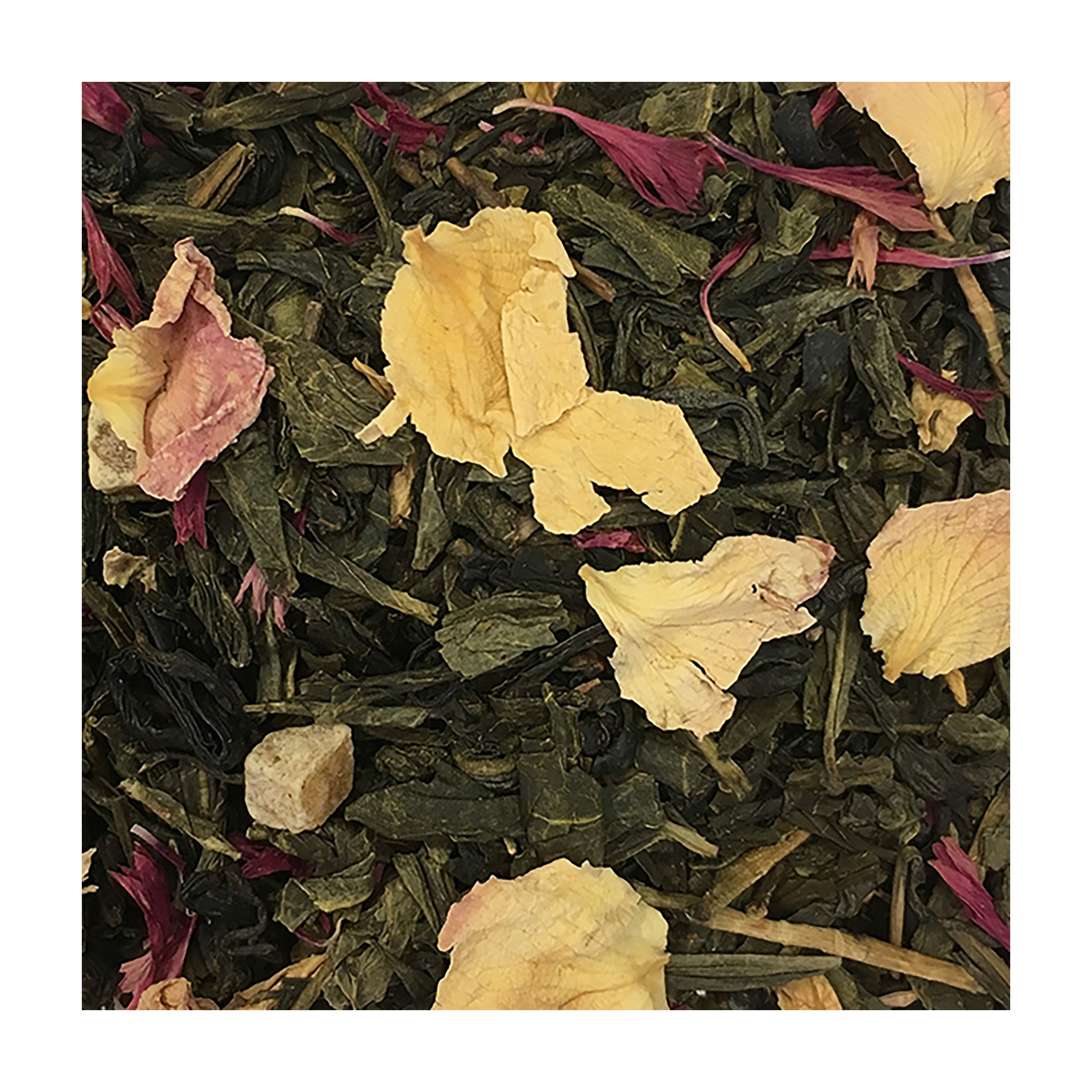 Ingredienti: Tè verdi cinesi, tè verdi giapponesi, papaia, aromi, petali di rosa moscata, petali di fiordaliso.