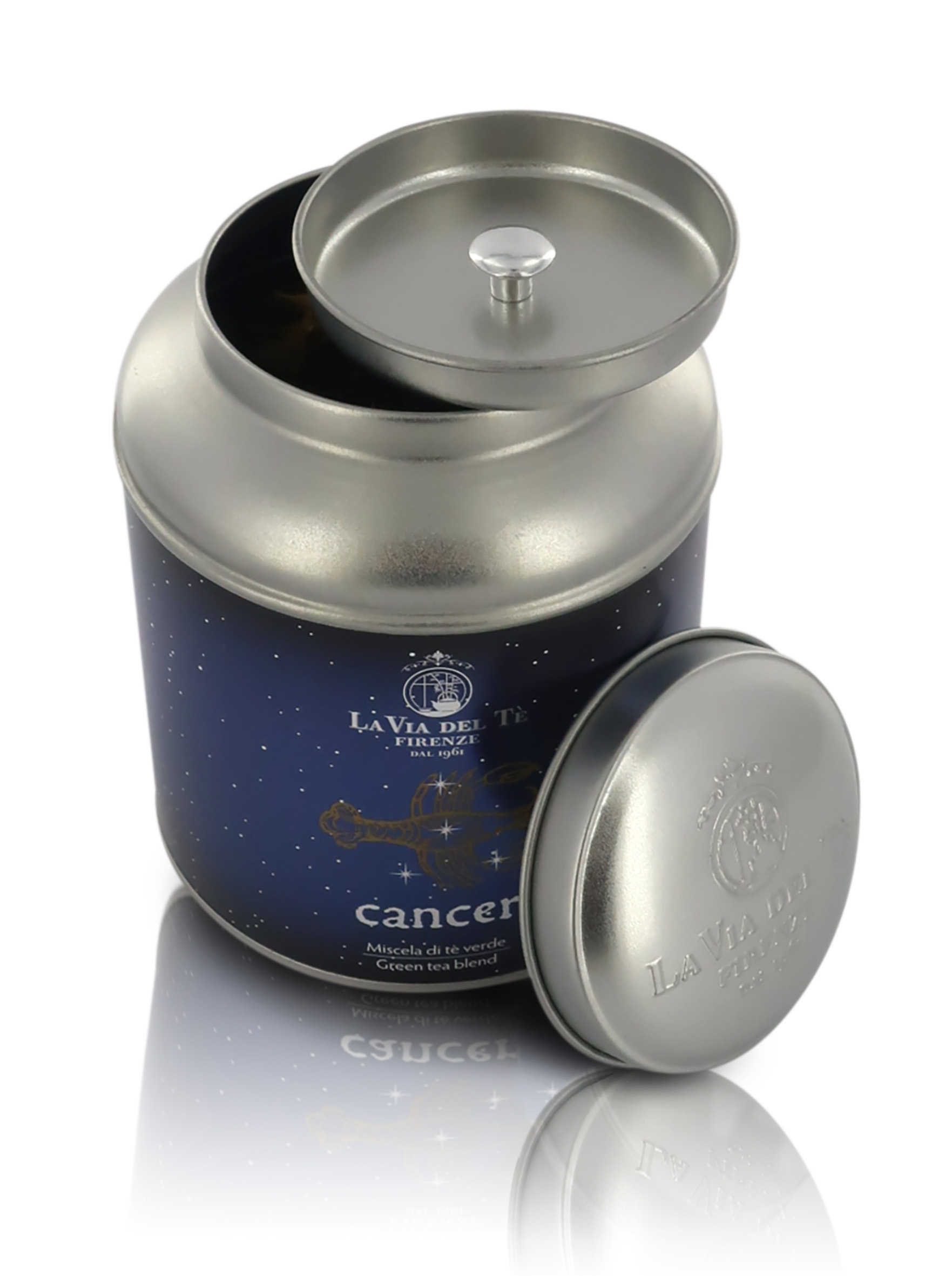 Miscela sfusa di tè verde e bianco (aghi d'argento), piacevolmente profumata, dedicata al segno del Cancro (segno di acqua, come lo Scorpione e i Pesci). i nati sotto il segno del Cancro (22 Giugno - 22 Luglio) sono governati dagli influssi della Luna e risultano empatici, sensibili e romantici.