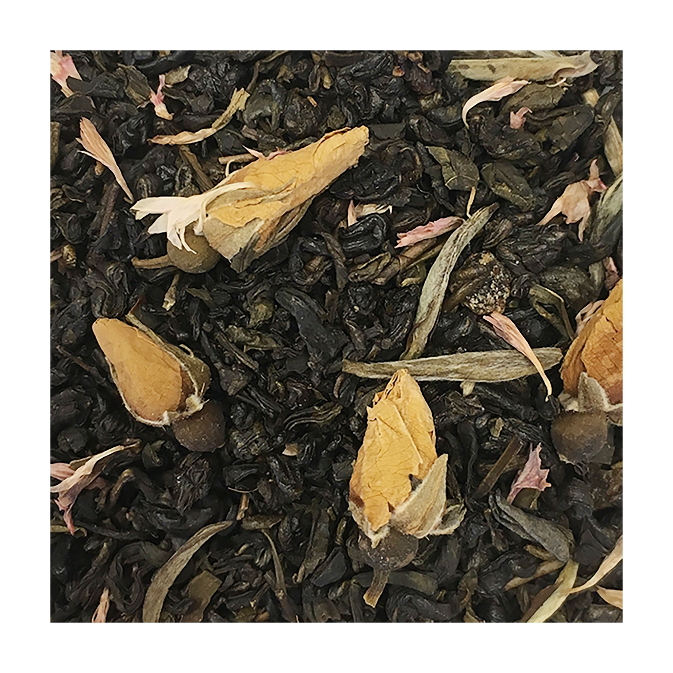 Ingredienti: Tè verdi cinesi, aromi, ananas in pezzi, tè bianco, rosa in boccioli, fiordaliso.