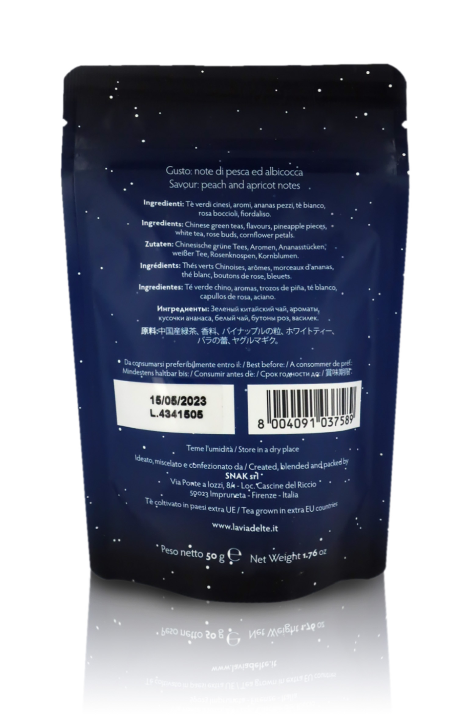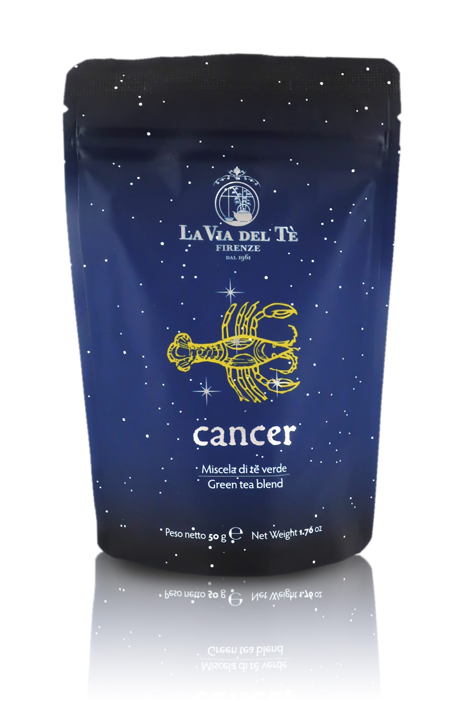 Miscela sfusa di tè verde e bianco (aghi d'argento), piacevolmente profumata, dedicata al segno del Cancro (segno di acqua, come lo Scorpione e i Pesci). i nati sotto il segno del Cancro (22 Giugno - 22 Luglio) sono governati dagli influssi della Luna e risultano empatici, sensibili e romantici.