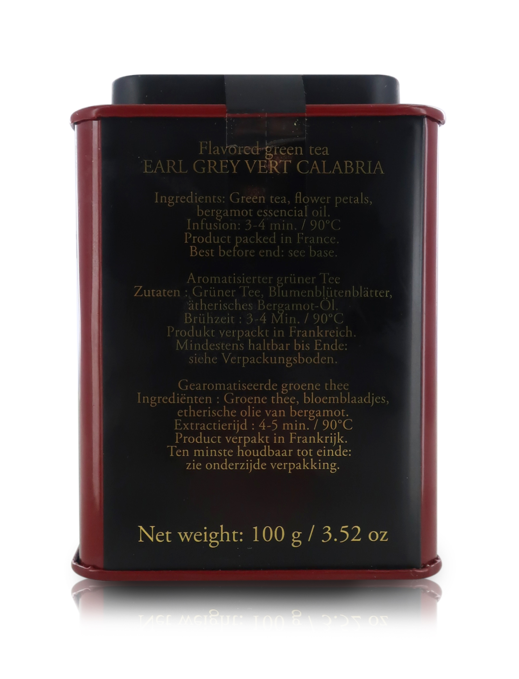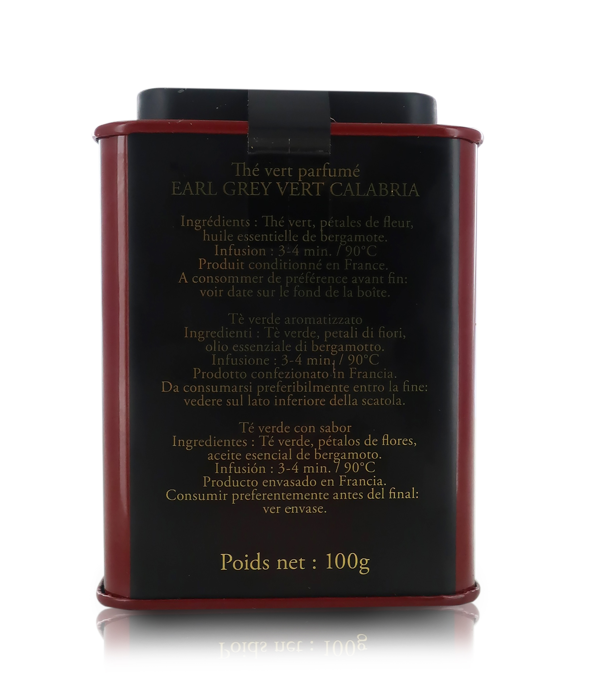 Il tè verde Earl Grey Vert Calabria di Dammann Frères è contenuto in un'elegantissima scatola di latta, perfetta non solo per conservare il prezioso aroma di questo tè pregiato, ma anche da regalare.