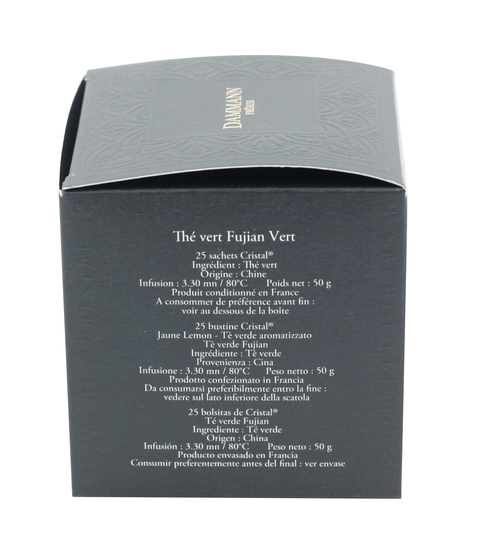 Il tè verde Fujian Vert di Dammann Frères è contenuto in esclusive e pratiche bustine "Cristal".