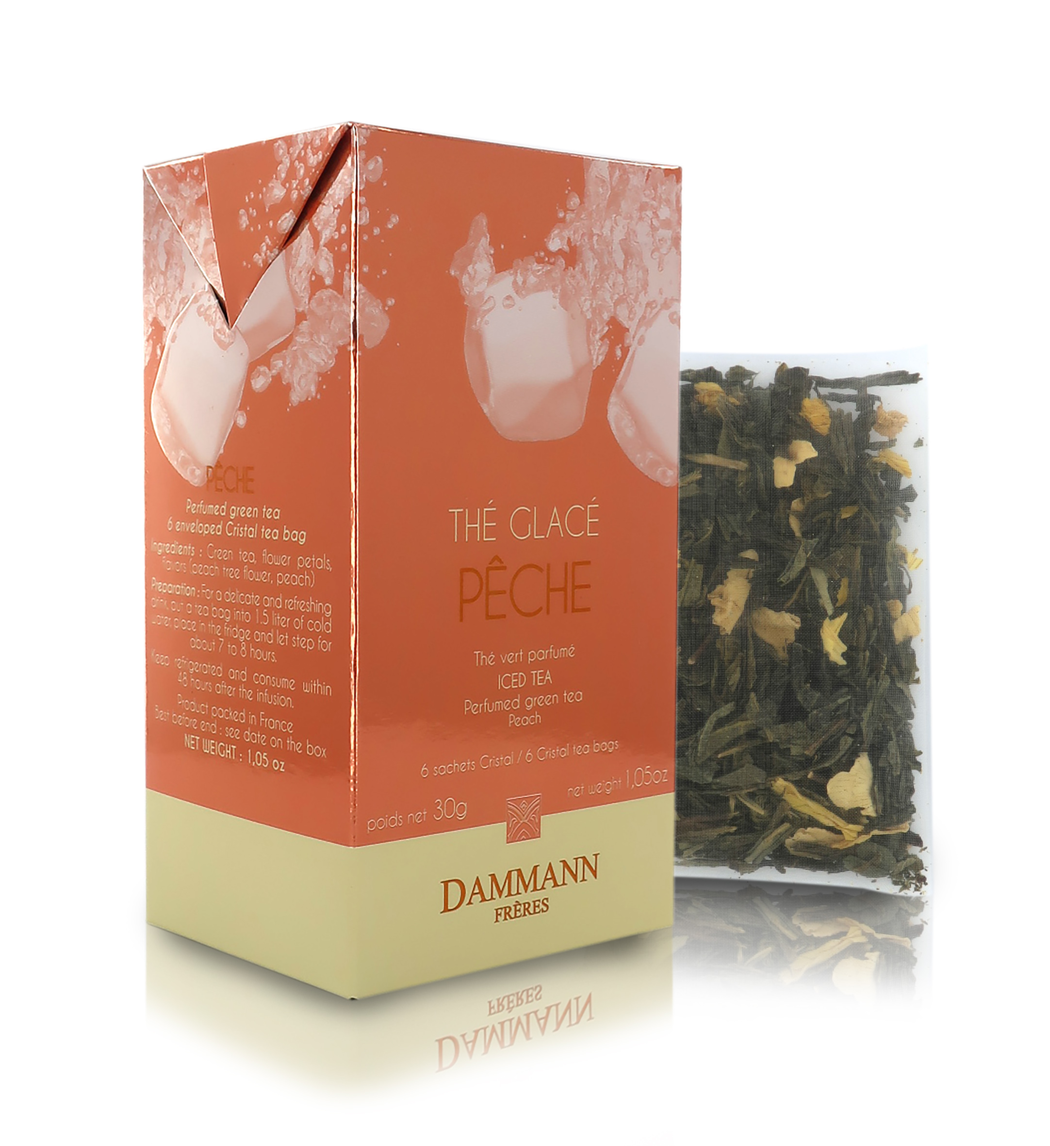 Tè verde aromatizzato alla pesca (frutto e fiori), facente parte della linea speciale di tè freddi e infusi Dammann Frères.