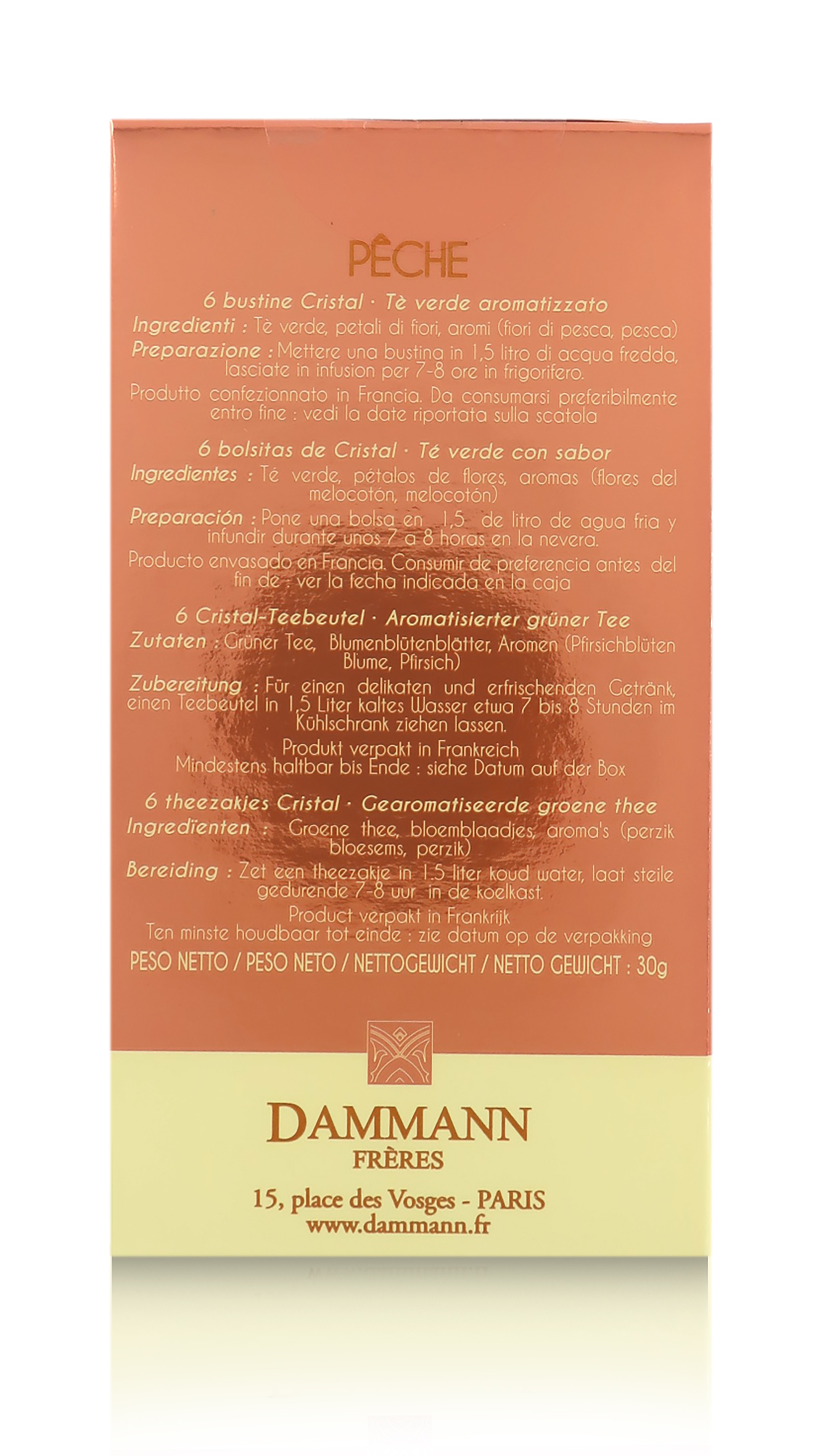 Dammann Pèche, Tè Verde Freddo Aromatizzato Alla Pesca E Fiori Di Pesco, 6 Filtri, Tot. 30 Grammi, Damman Frères