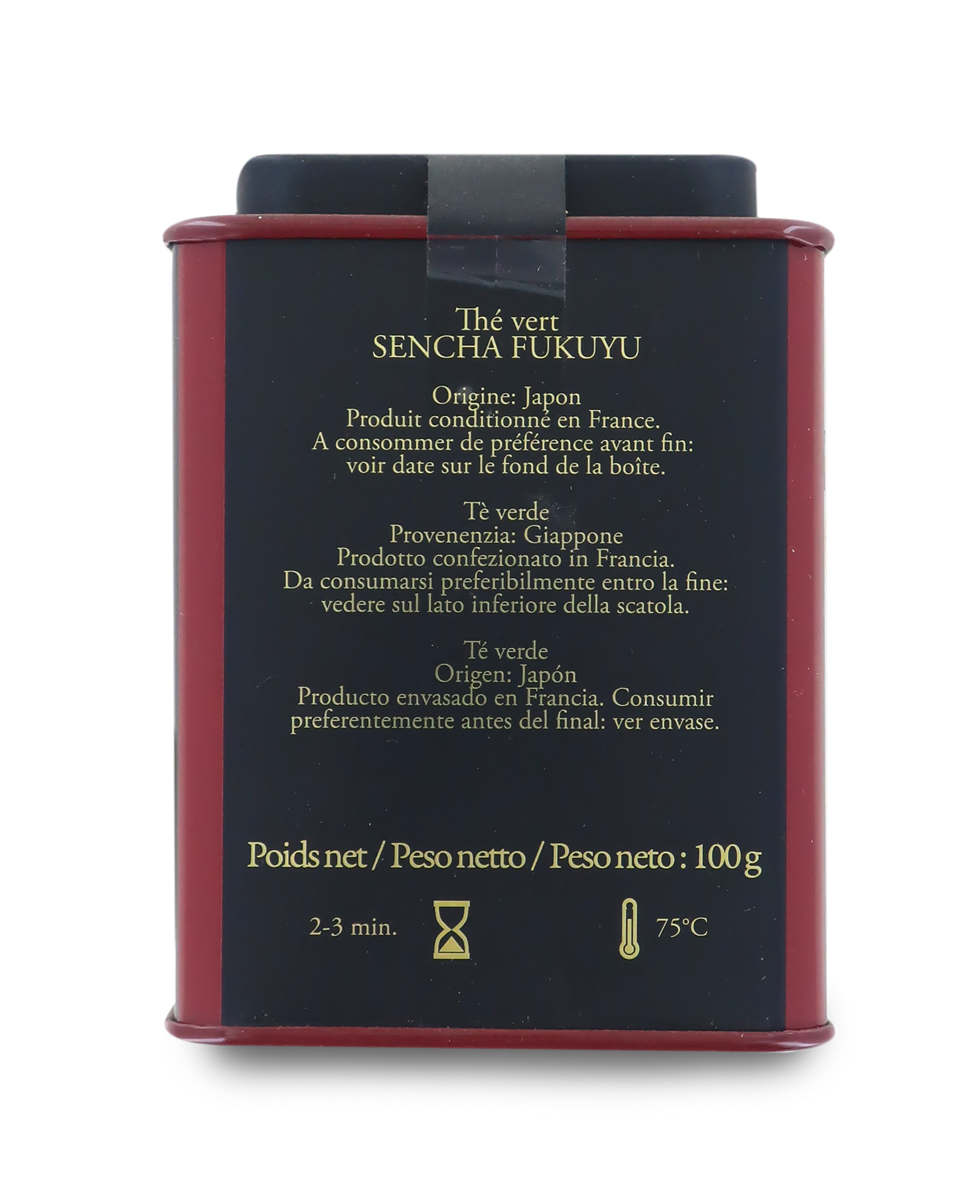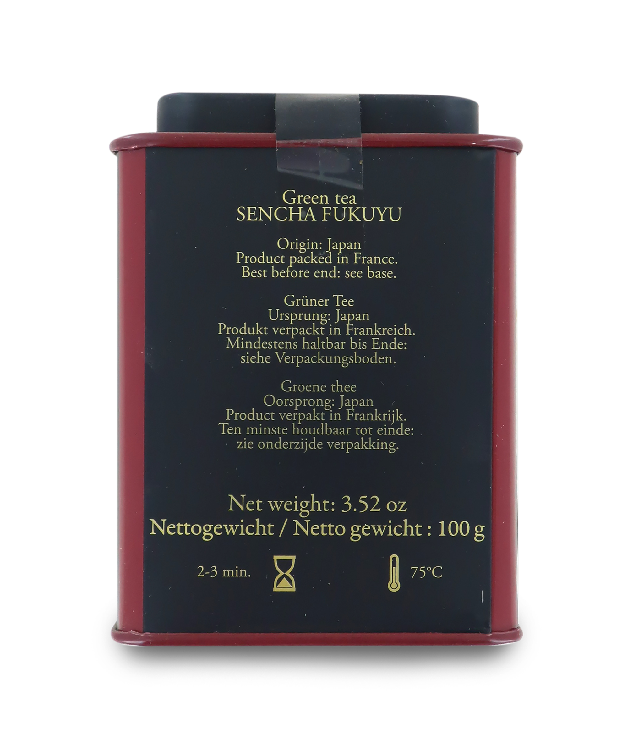 Il tè verde Sencha Fukuyu è contenuto in un'elegantissima scatola di latta, perfetta non solo per conservare il prezioso aroma di questo tè pregiato, ma anche da regalare.