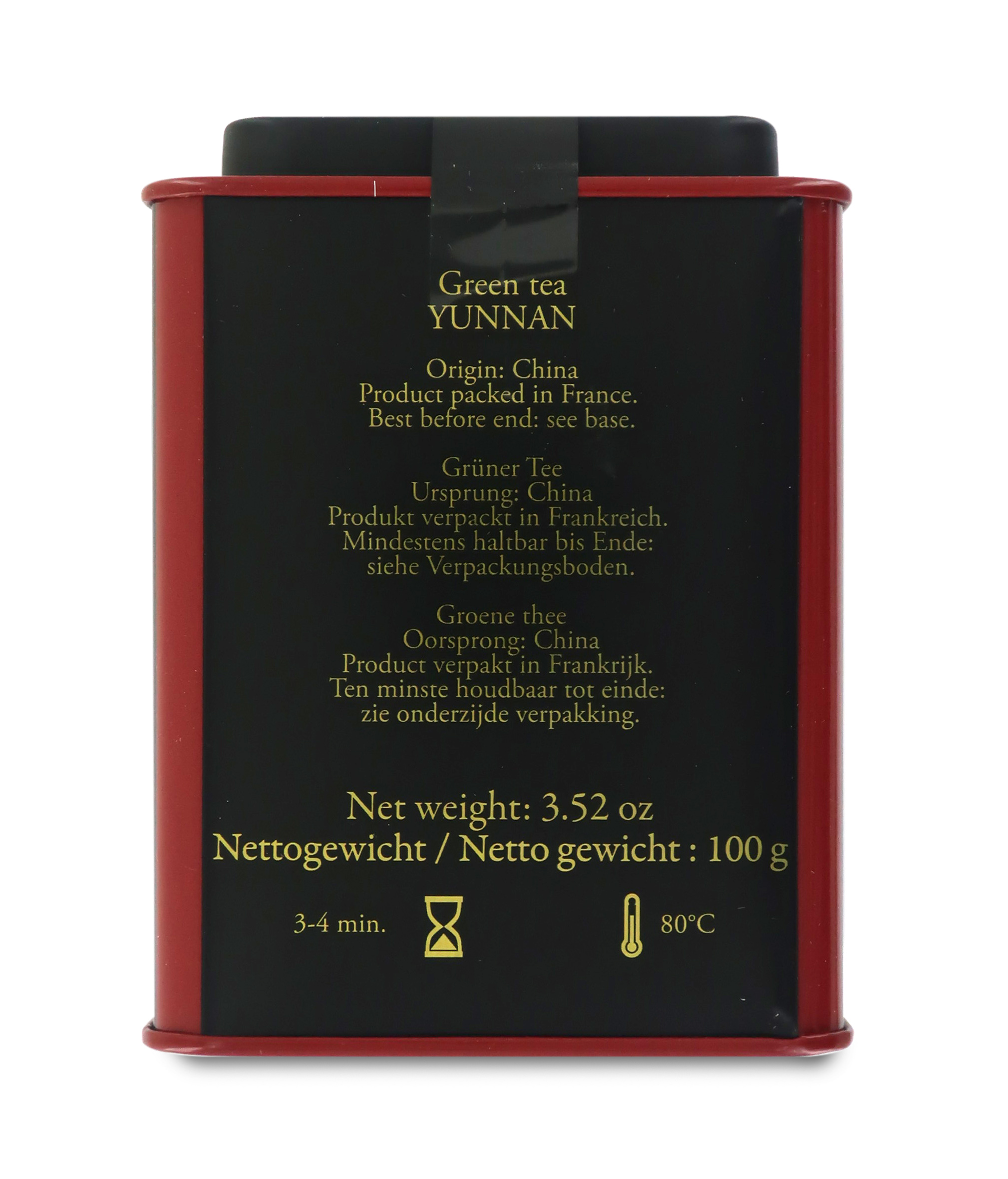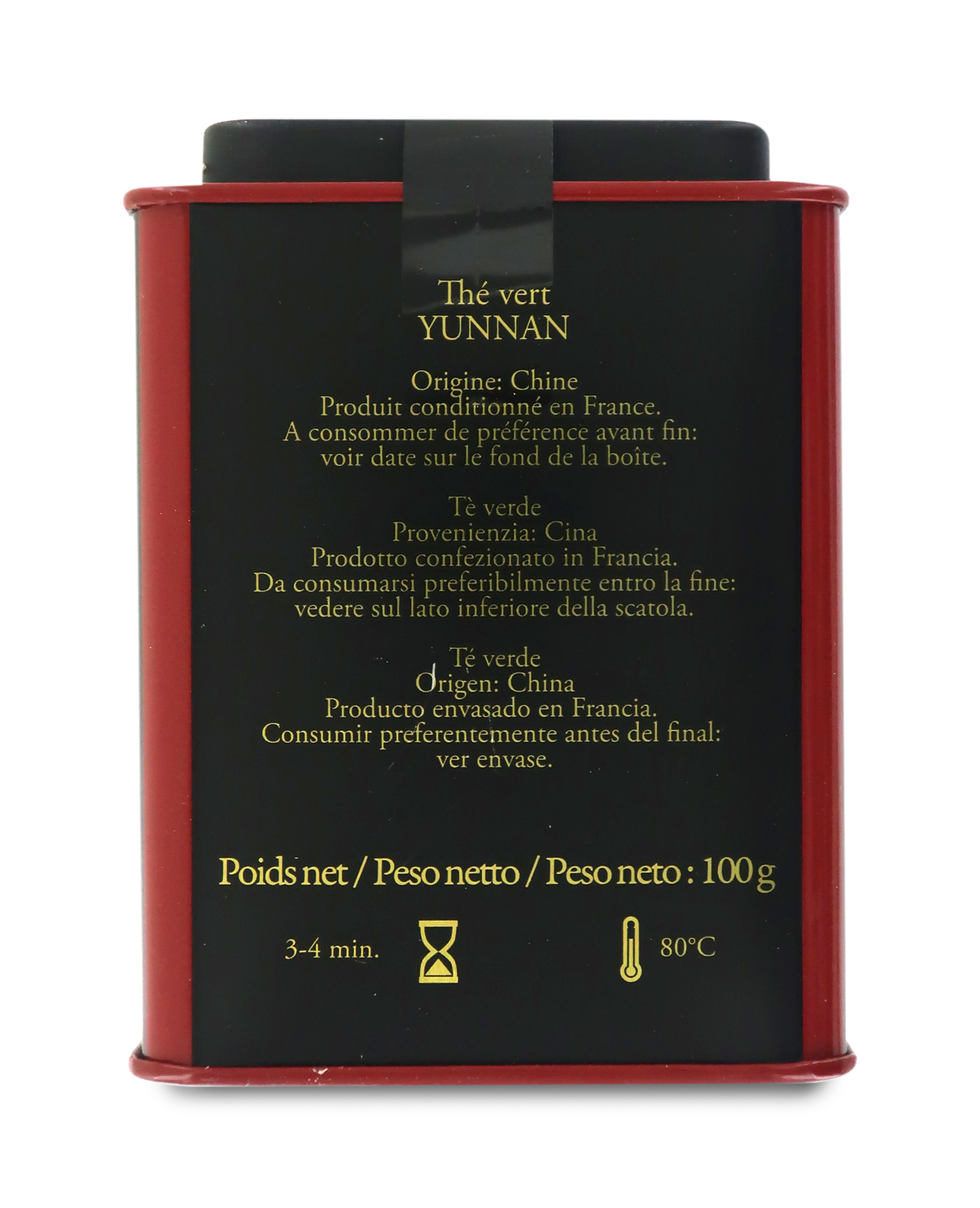 Il tè verde cinese Yunnan Vert è contenuto in un'elegantissima scatola di latta, perfetta non solo per conservare il prezioso aroma di questo tè pregiato, ma anche da regalare.