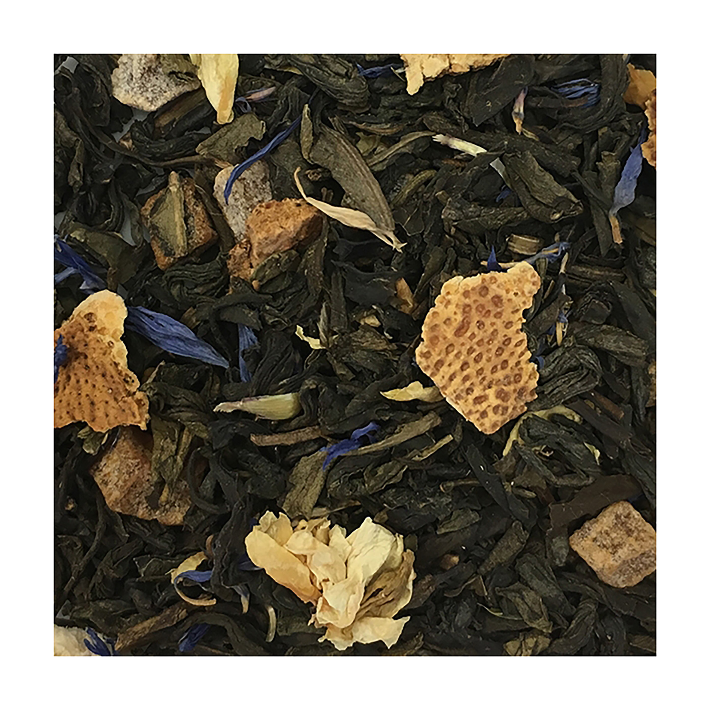 Ingredienti: Tè verdi cinesi, mango in pezzi, arancio in scorze, aromi, fiordaliso, fiori di gelsomino.