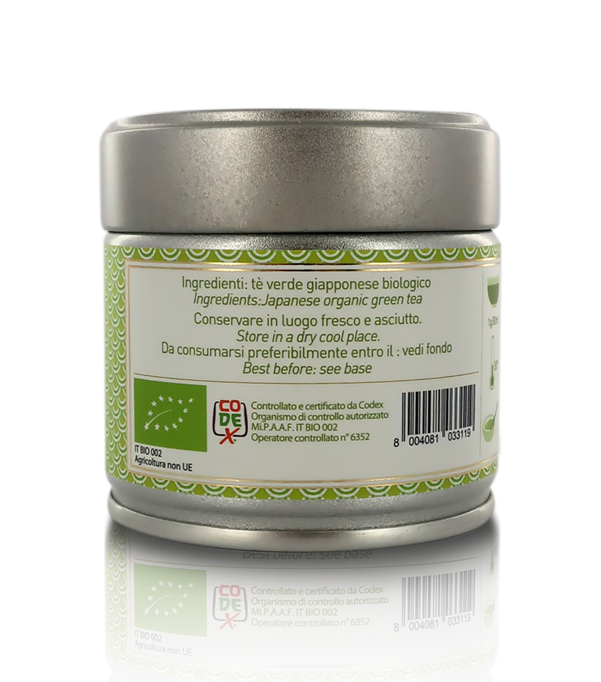 Ingredienti: tè verde giapponese in polvere, matcha biologico.
