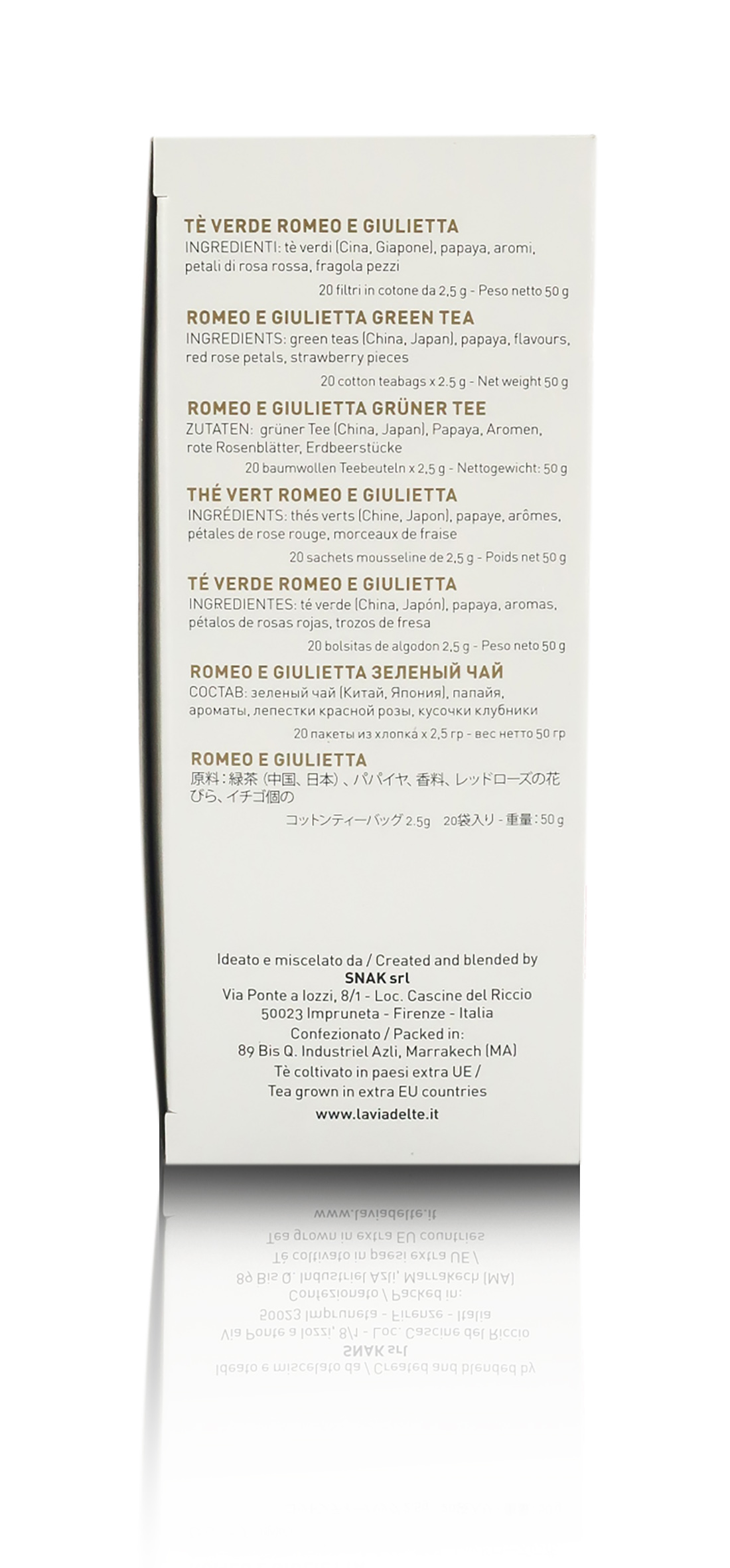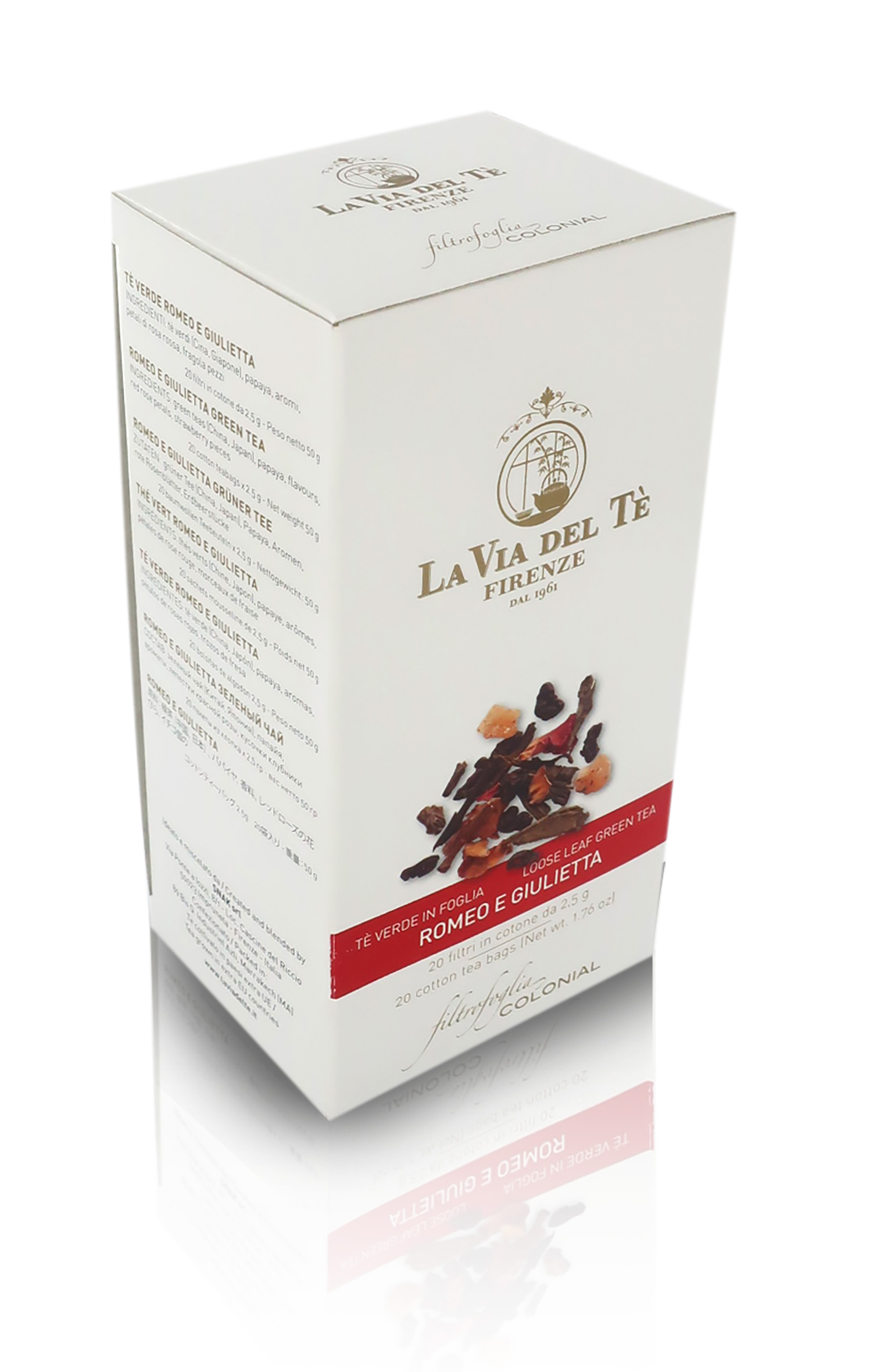 Romeo e Giulietta, Miscela di Tè Verdi alla Fragolina, Astuccio con 20 Filtri da 2,5g - 50g