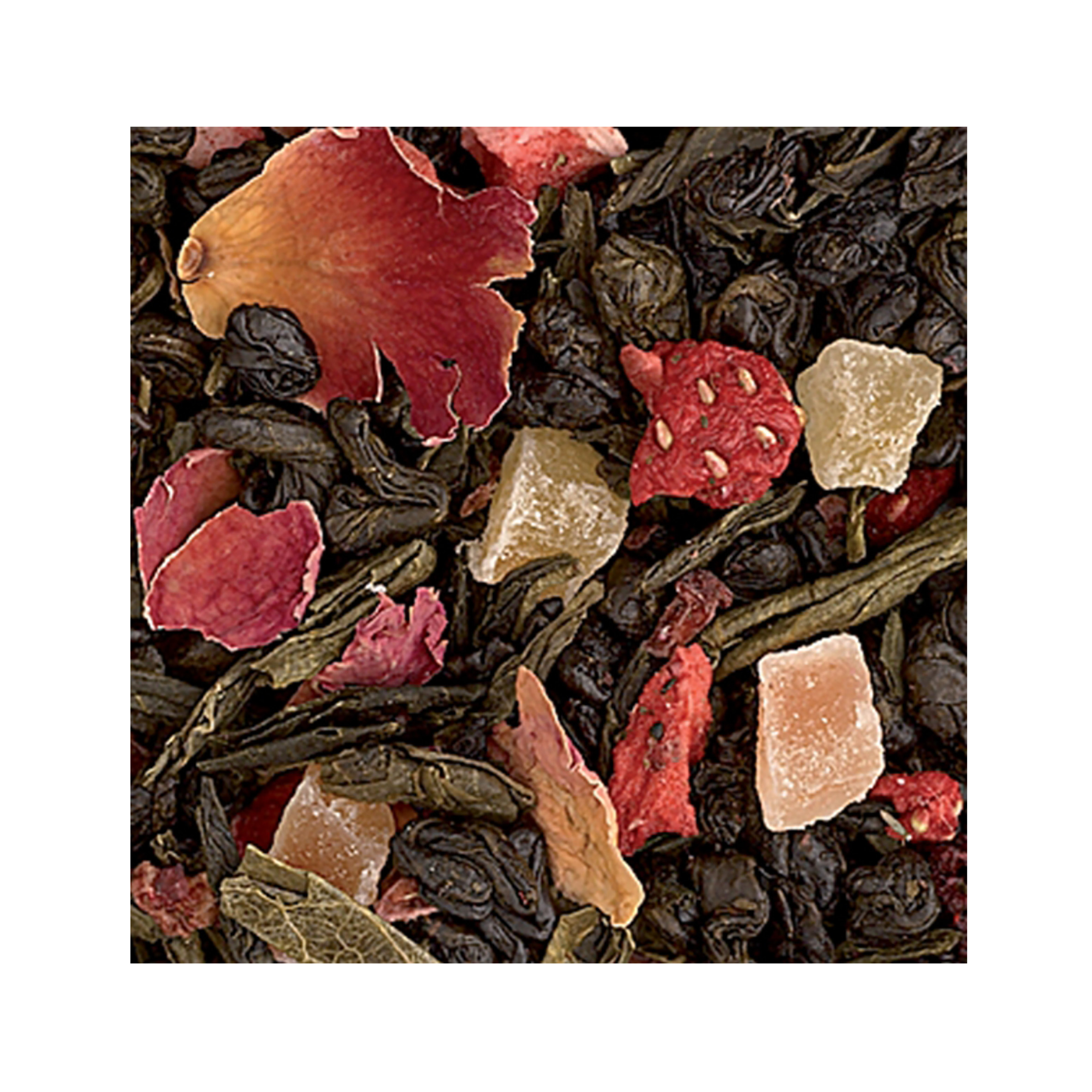 Ingredienti: Tè verdi, papaia, aromi, petali di rosa rossa, fragola in pezzi.