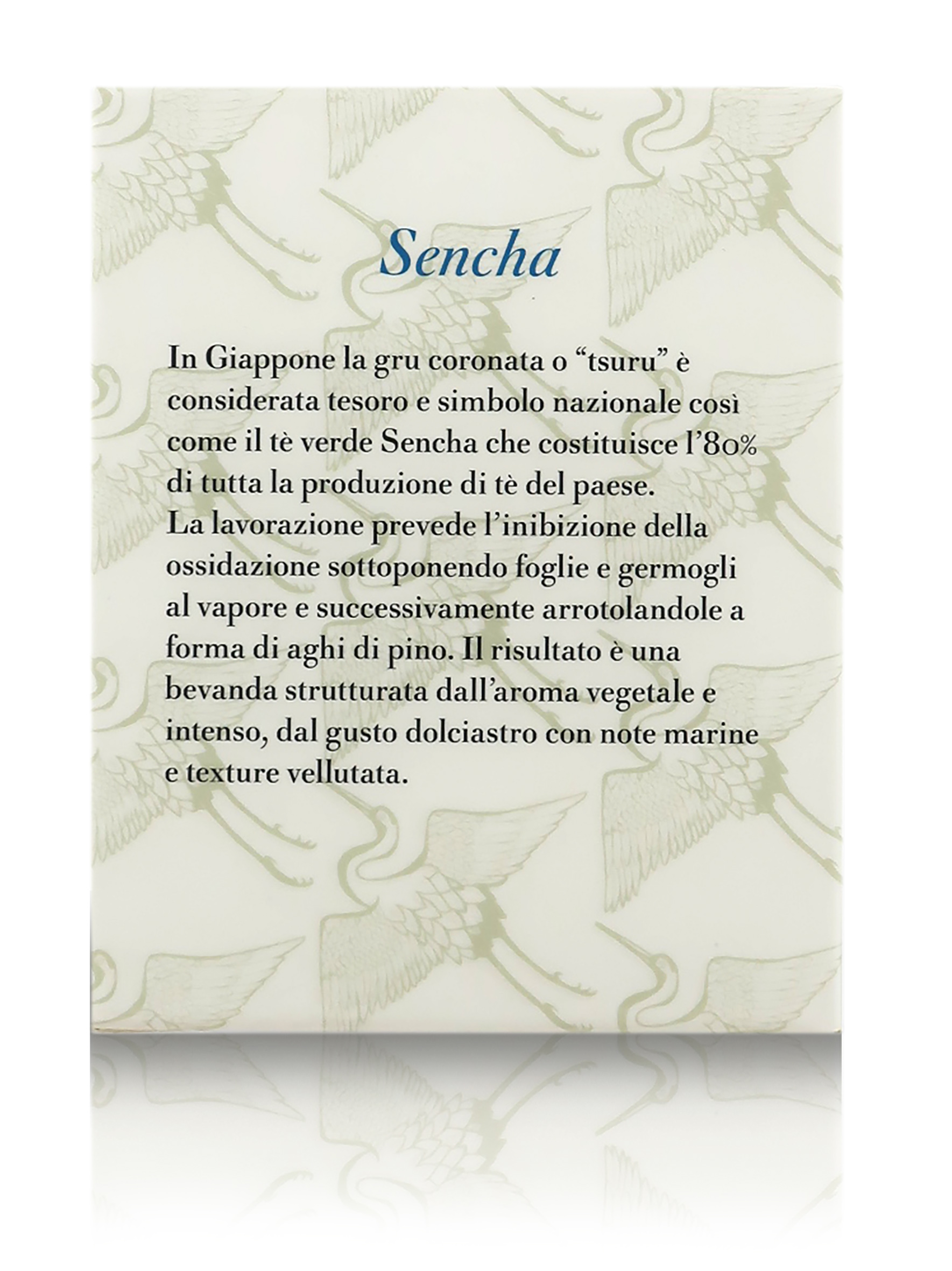 Tè giapponese in foglia della tipologia "Sencha". Rappresenta l'80% della produzione di tè del Giappone. La lavorazione fa in modo che non vi sia ossidazione, sottoponendo foglie e germogli al vapore per poi arrotolarle formando degli aghi di pino. Ne risulta una bevanda strutturata di colore giallo/verde chiaro e dall’aroma vegetale e intenso, che si accompagna a un gusto dolciastro, con note marine e consistenza vellutata.