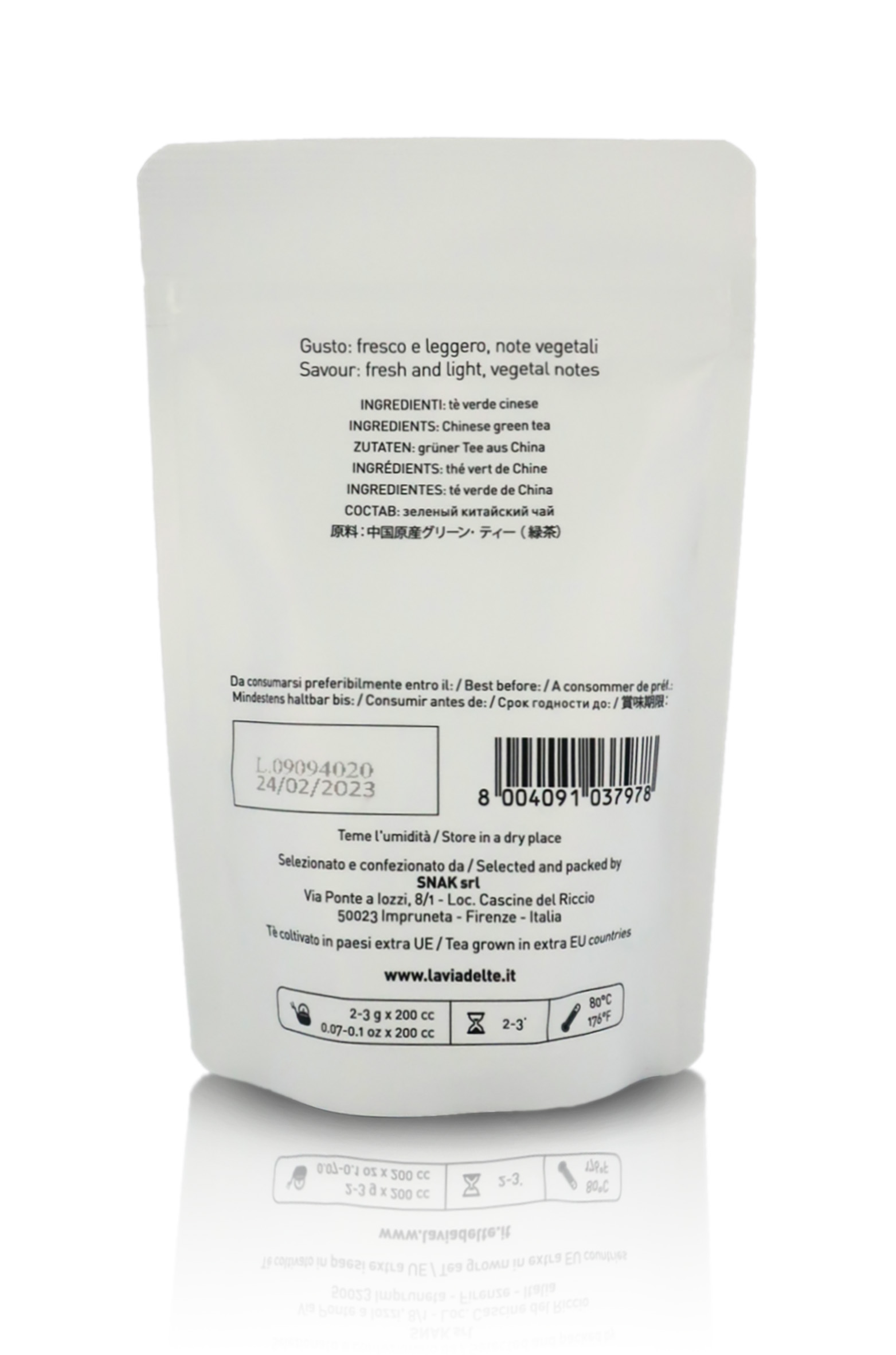 Modalità d'uso: 2,5 g x 200 cc di acqua minerale Lasciare in infusione per 2-3 minuti in acqua a 80°.