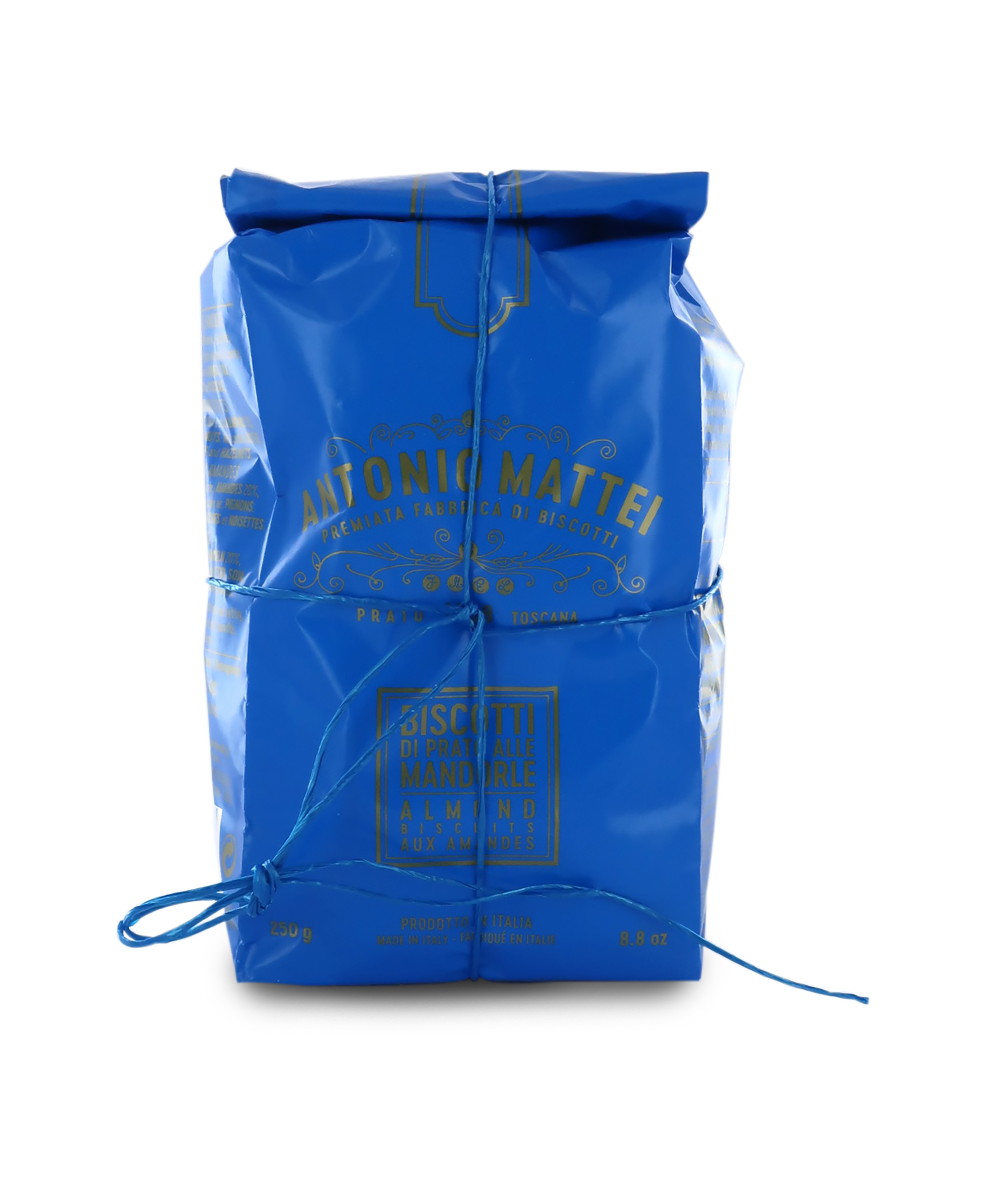 Mattei, nel pieno rispetto della tradizione, propone questi cantucci alle mandorle di qualità superiore, utilizzando ingredienti genuini e mandorle attentamente selezionate per la loro grammatura e il loro grado di tostatura.
