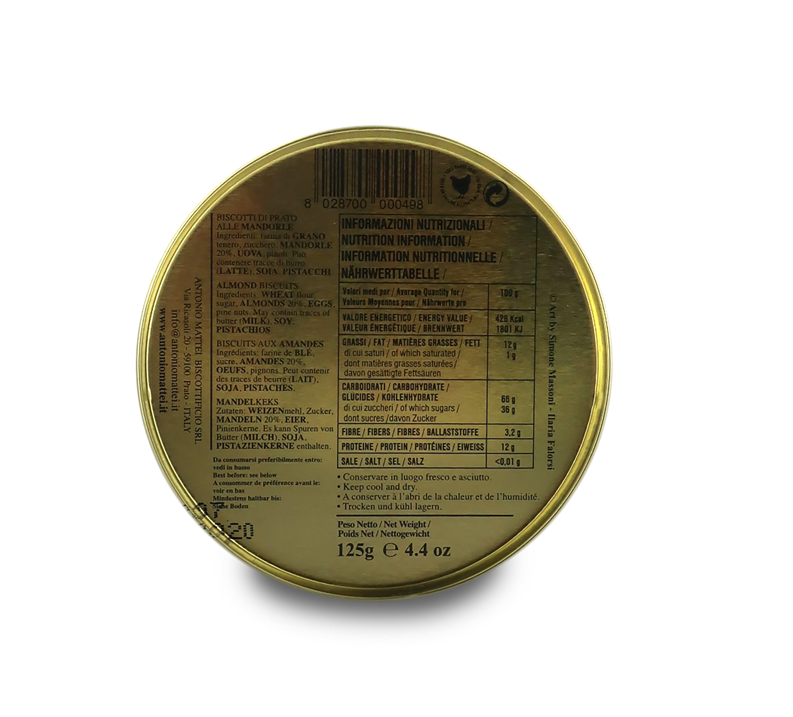 Cantucci alle Mandorle in Biscottiera di Latta Decorata, Biscotti di Prato Classici in Confezione Regalo da 125g