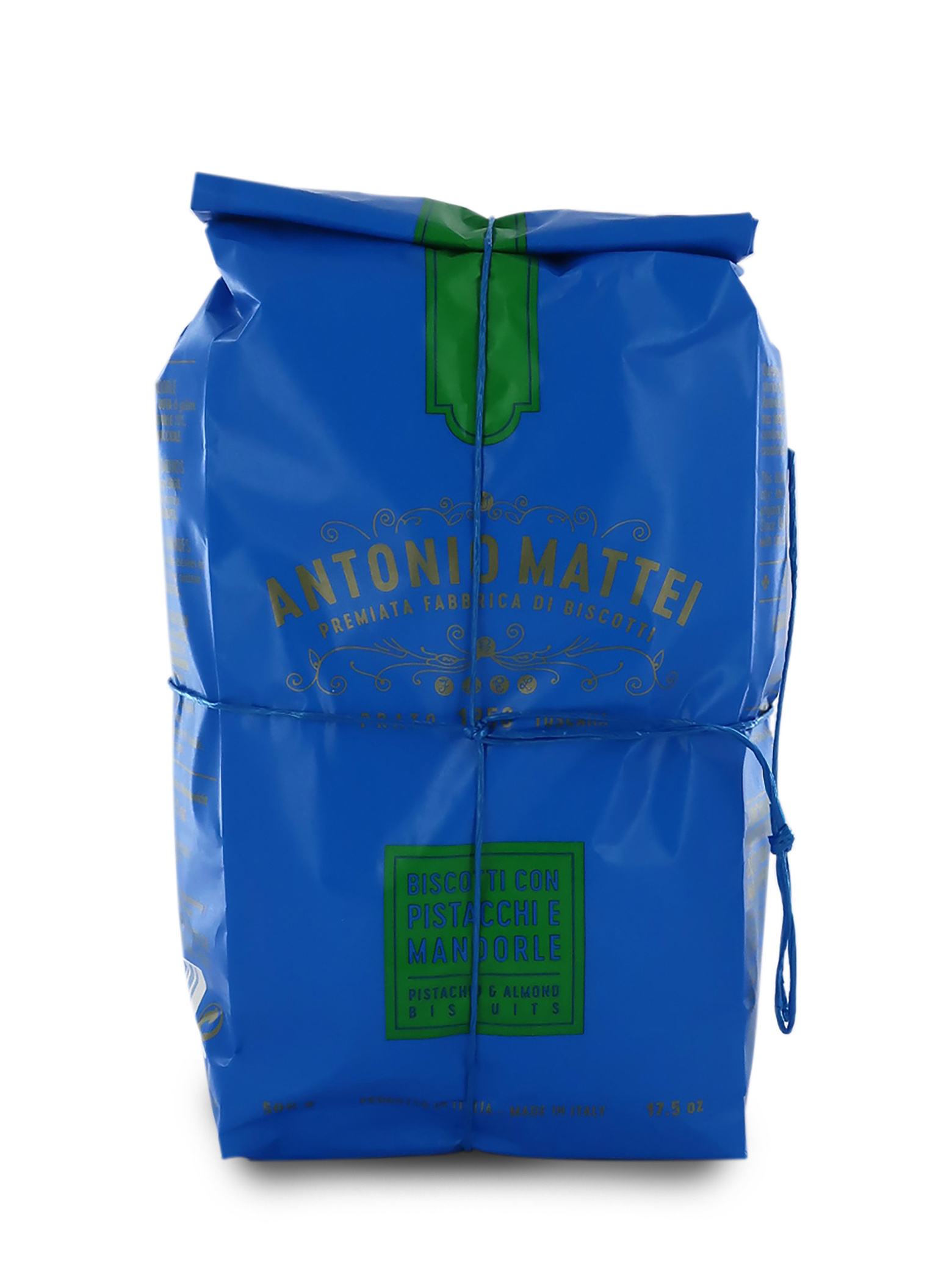 Nel 2017, Mattei realizza il cantuccio con pistacchi e mandorle, ancora più goloso! Per la sua preparazione, vengono selezionati pregiati pistacchi e mandorle che spiccano per la loro grammatura e l'attento grado di tostatura.