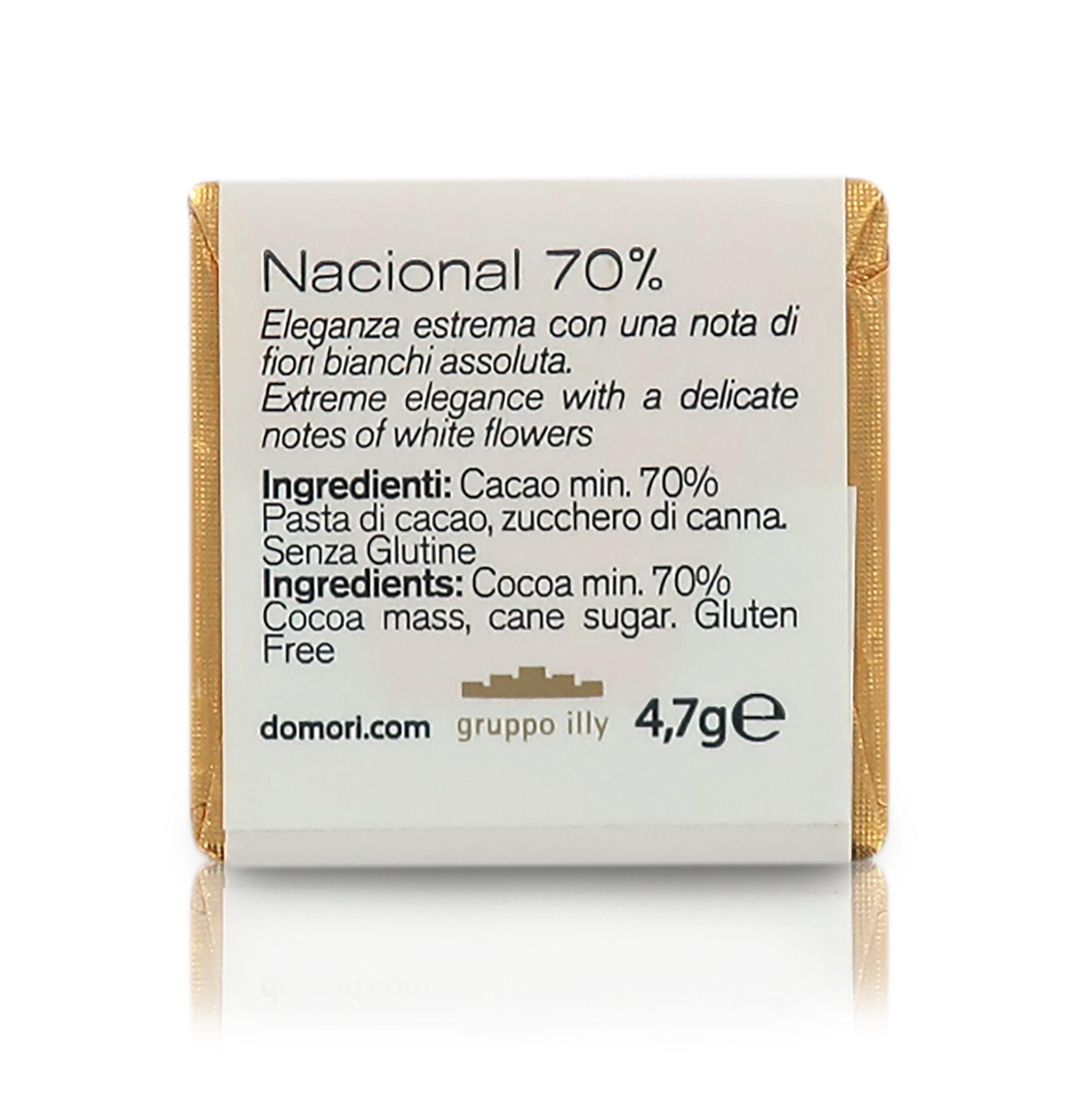 Ingredienti: pasta di cacao Arriba Nacional Hacienda Victoria (70%), zucchero di canna (30%). Può contenere tracce di SOIA, LATTE e FRUTTA A GUSCIO.