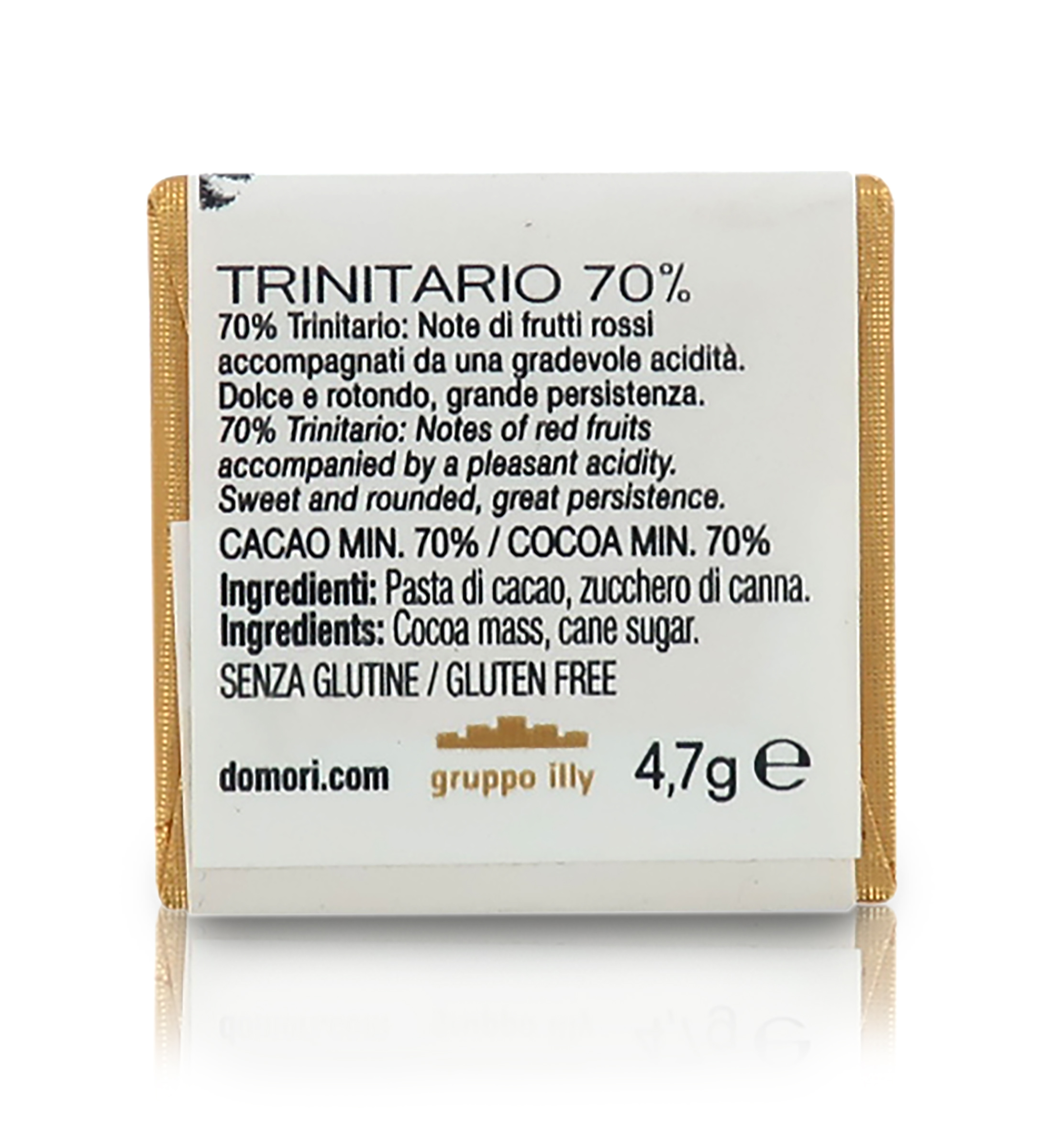 Ingredienti: pasta di cacao Madagascar, zucchero di Canna. Può contenere tracce di LATTE, SOIA e FRUTTA A GUSCIO.
