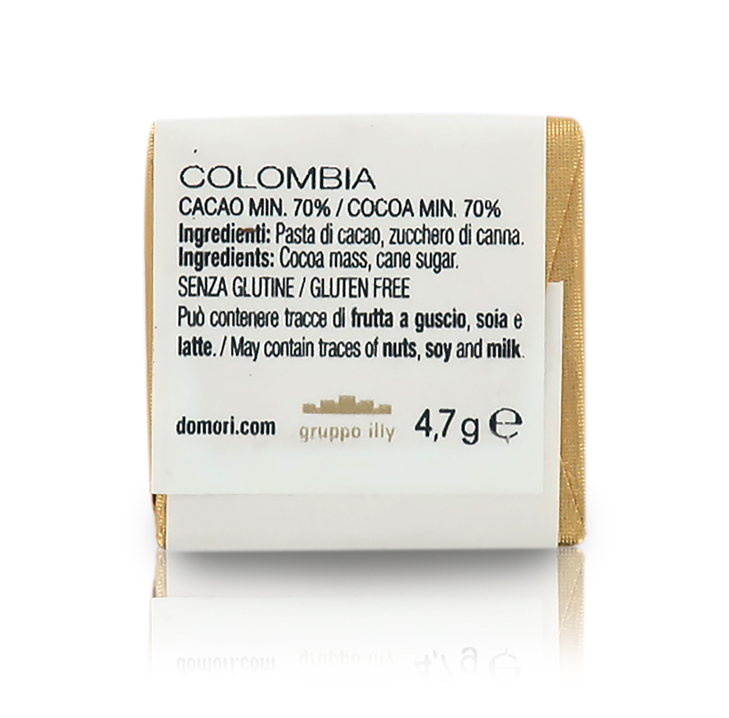 Cioccolatini Napolitain realizzati con 70% di cacao di una varietà di Trinitario della regione colombiana di Tierralta, con note di caramello, anacardi e frutti maturi. Cioccolato aromatico ed elegante.