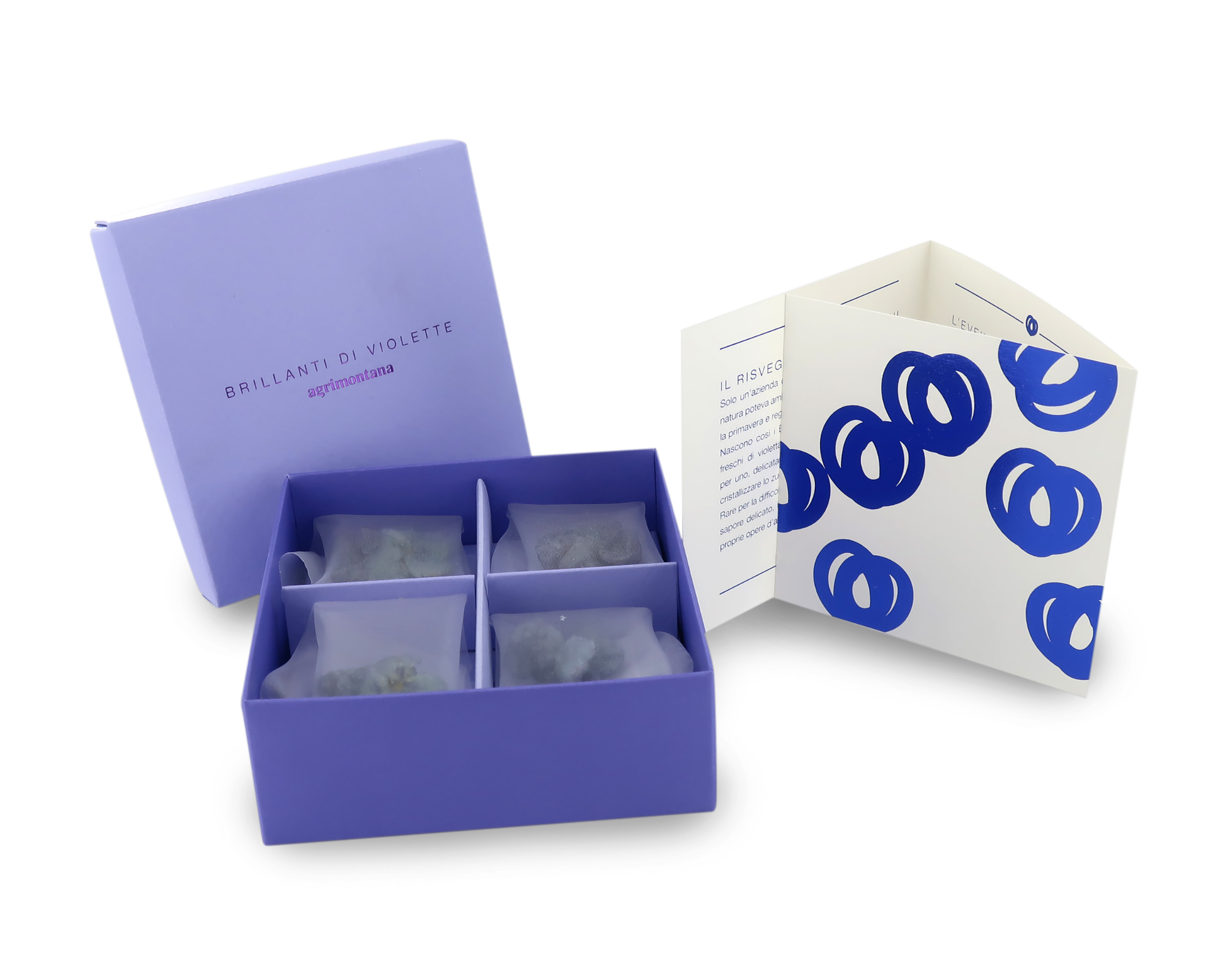 Scatola Regalo Con 4 Violette Cristallizzate, ''Brillanti Di Violette''