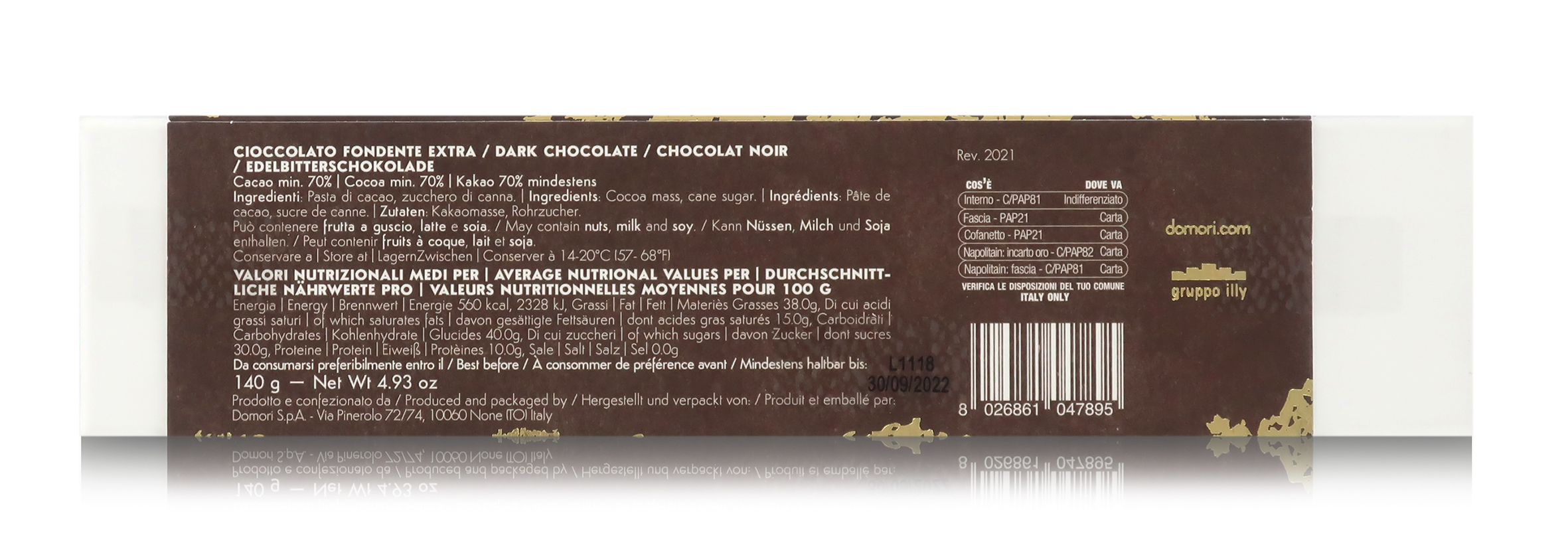 Note di conservazione: Il prodotto deve essere conservato in un luogo fresco, asciutto, senza odori e ad una temperatura compresa fra i 14° e i 20°C.