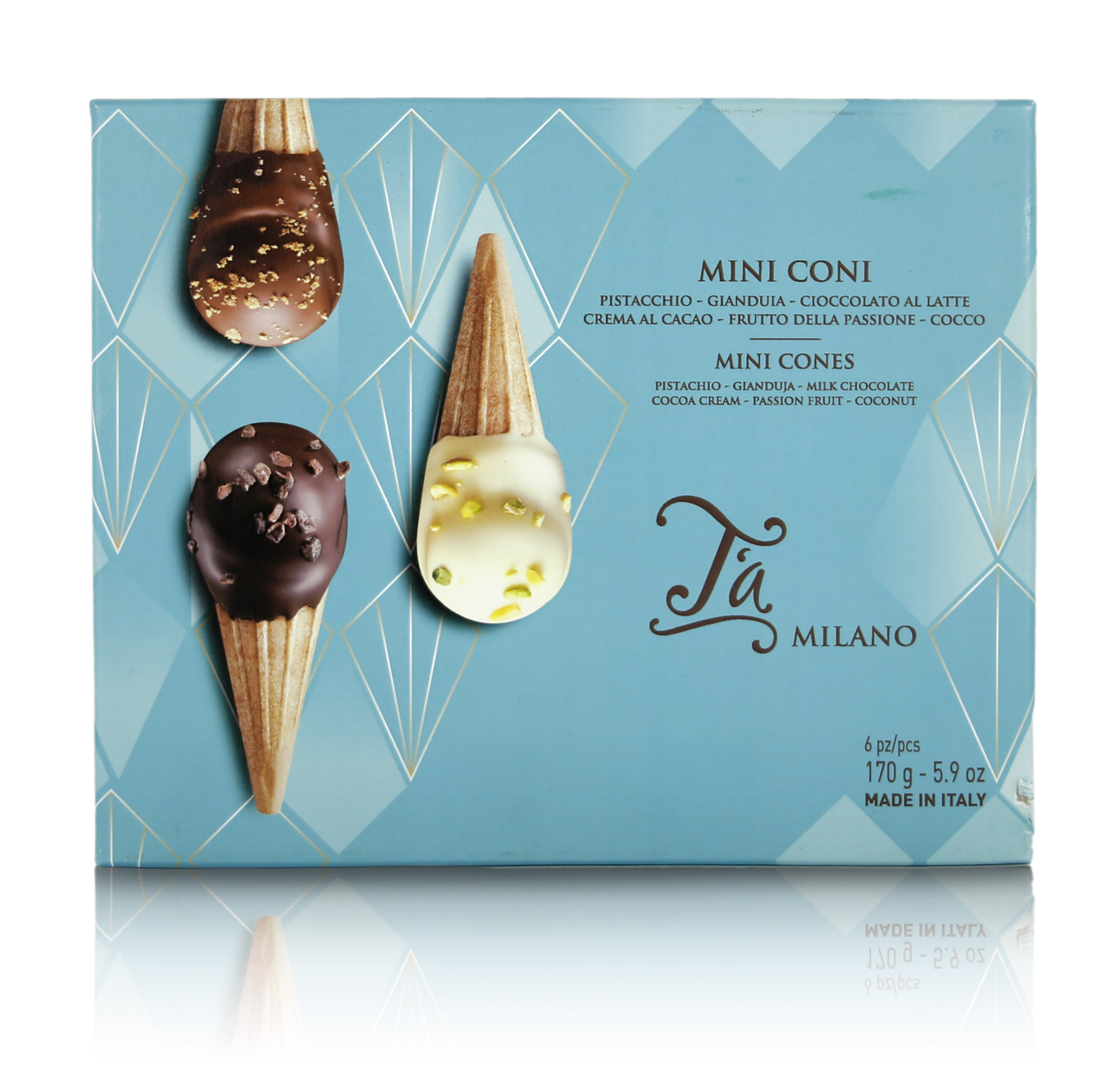 T'a Milano 6 Mini Coni Assortiti: Pistacchio, Gianduia, Crema al Cacao, Cioccolato al Latte, Cocco e Frutto della Passione, 170g