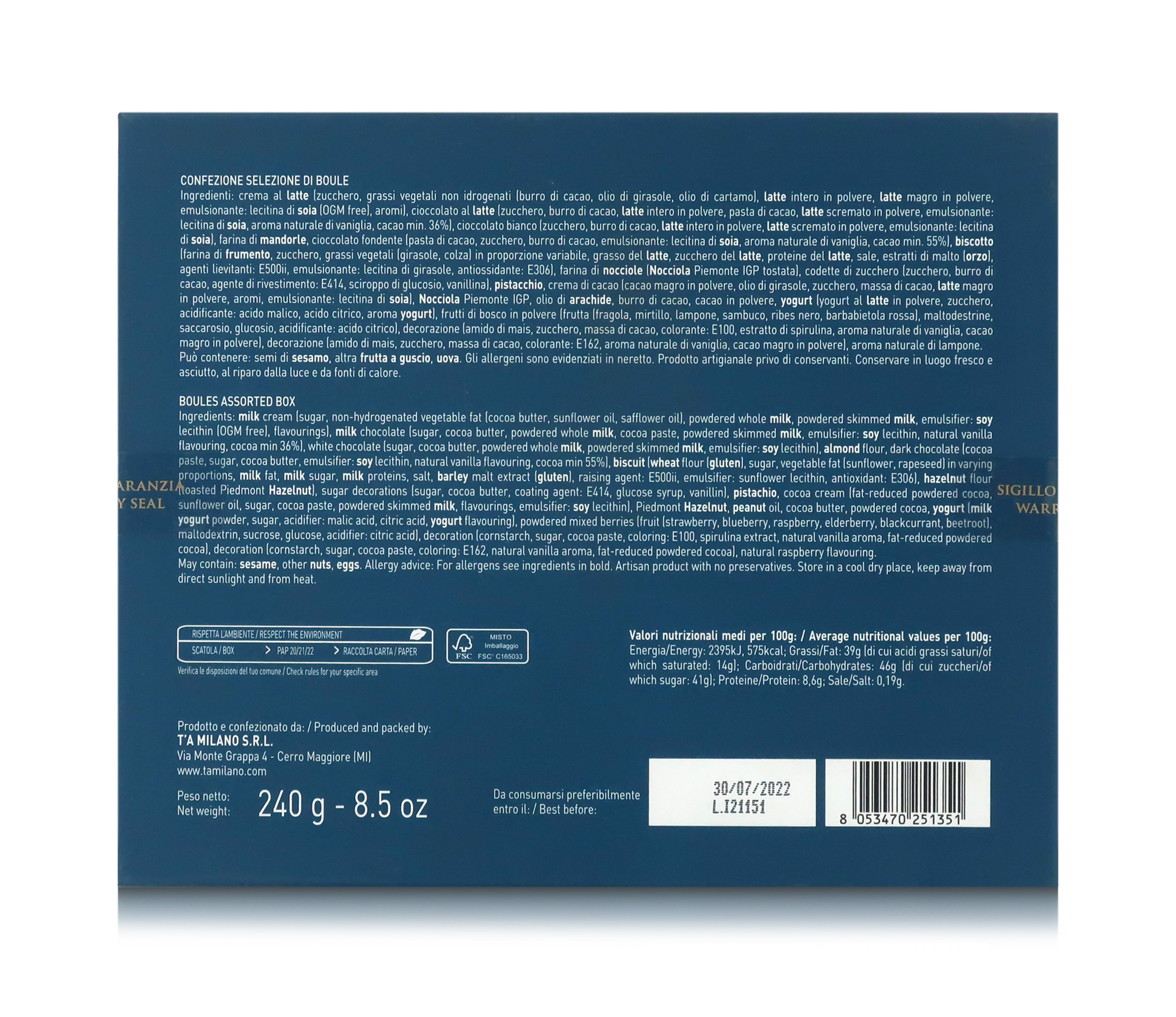 T'a Milano Confezione con Selezione di Praline Boule, Cioccolato Artigianale Prodotto in Italia, 20 Pz, 240 Grammi