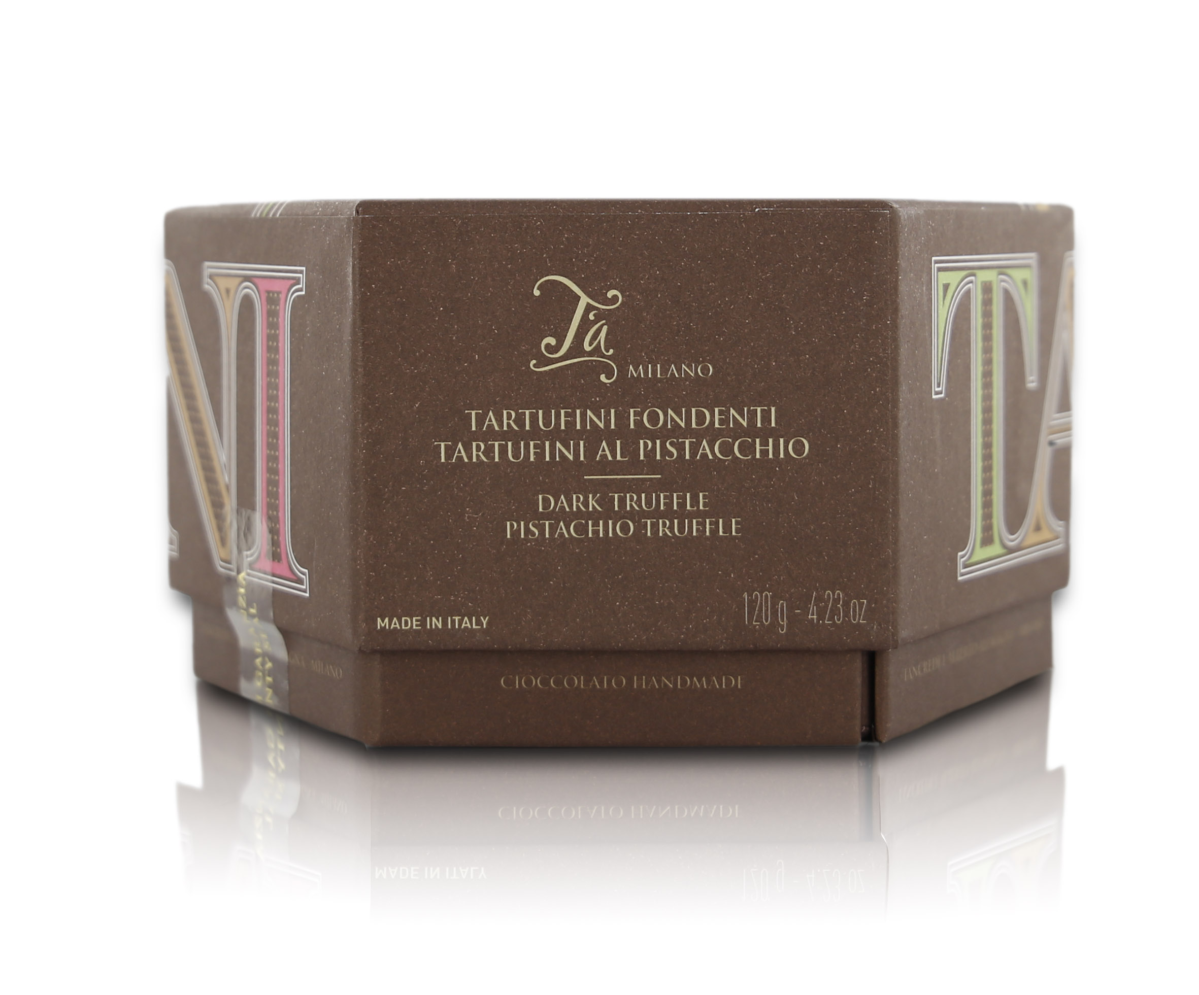 T'a Milano Confezione regalo con 14 tartufini: 7 al cioccolato fondente / 7 al cioccolato fondente e pistacchio - 120g