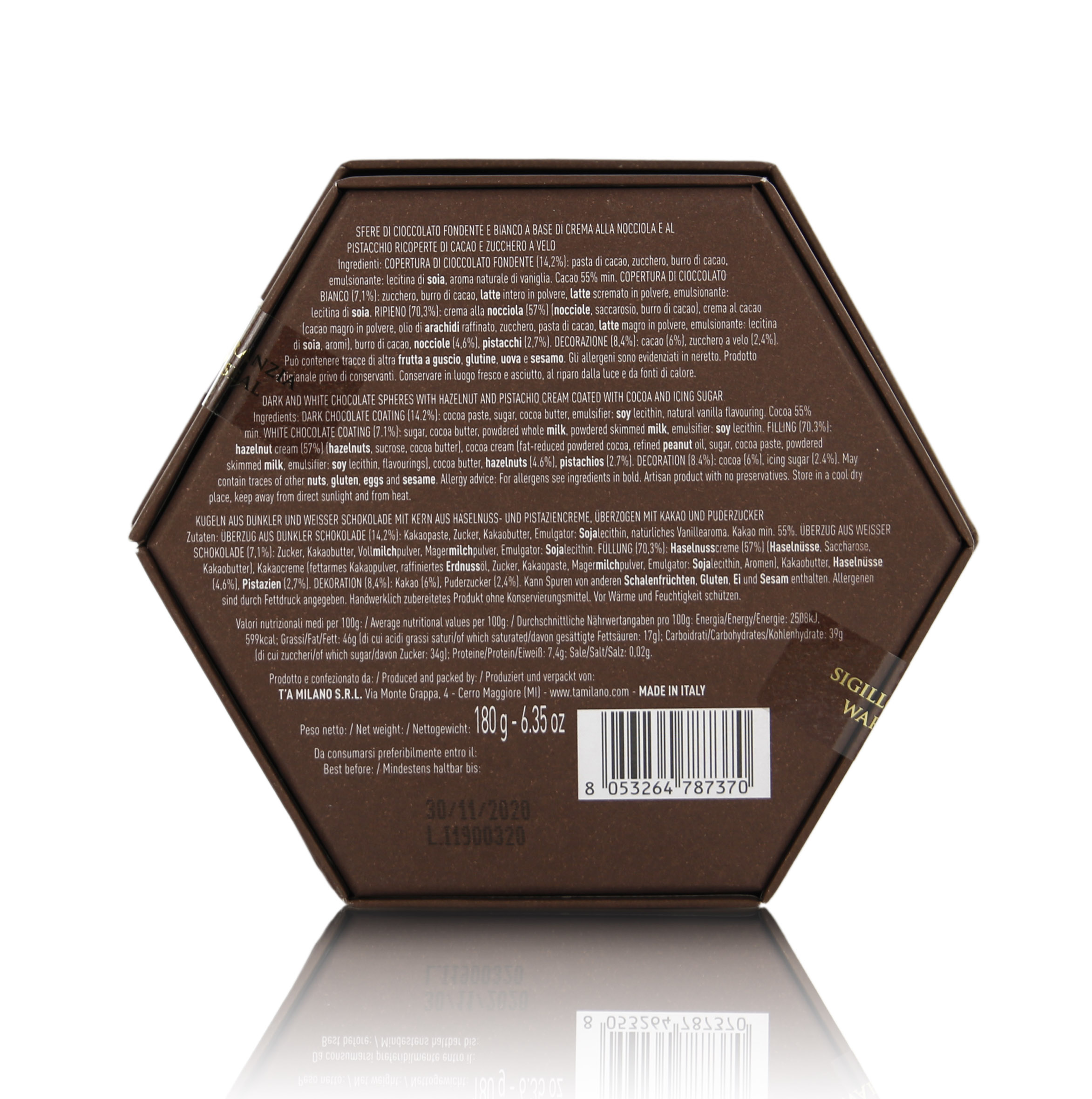 T'a Milano Confezione regalo con 21 tartufini: 7 al cioccolato bianco / 7 al fondente / 7 al fondente e pistacchio - 180g