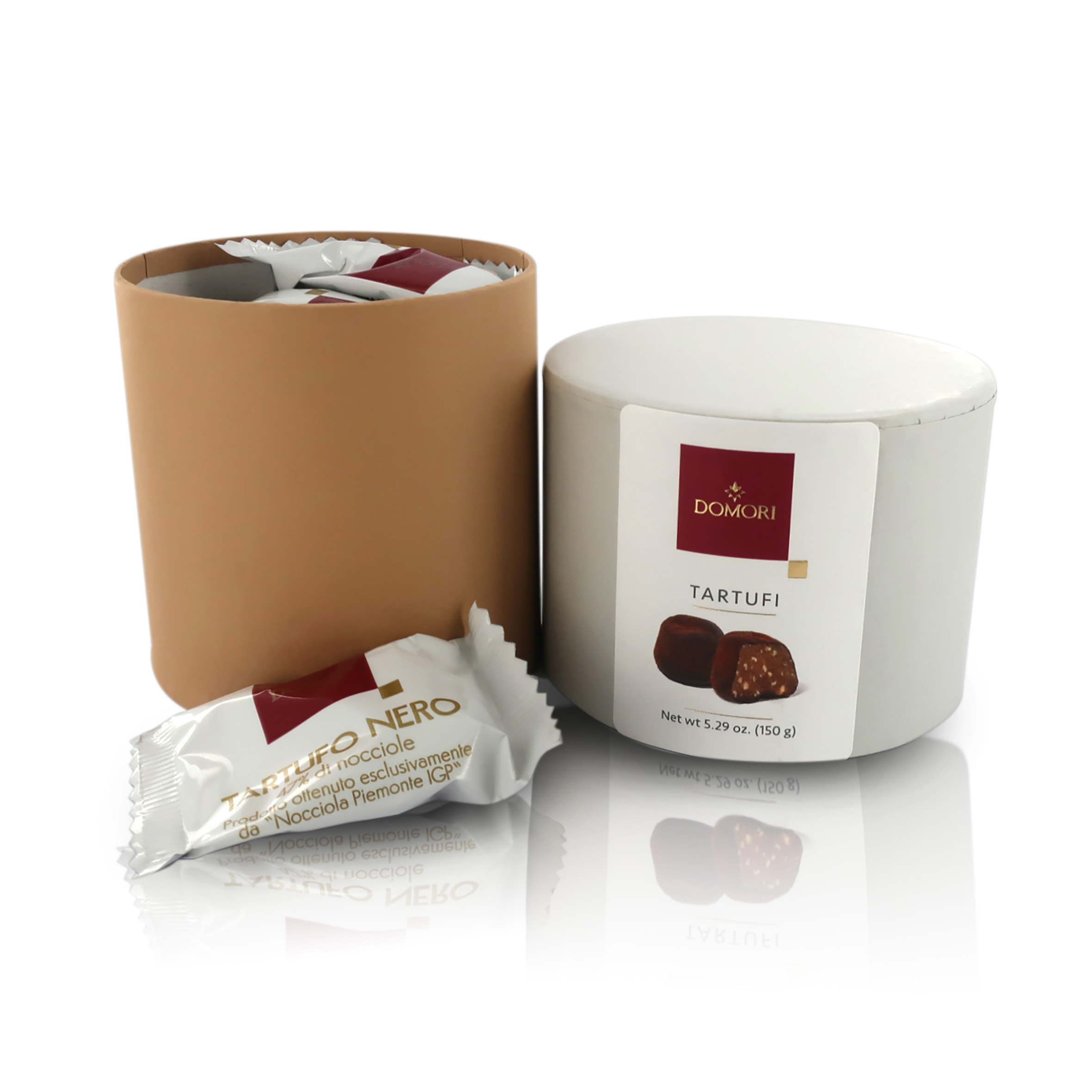 Praline con cioccolato al latte e cioccolato fondente, dall'intenso sapore di NOCCIOLA Piemonte IGP. Un grande classico dell'arte cioccolatiera piemontese, reinterpretato con il cacao fine Domori.
