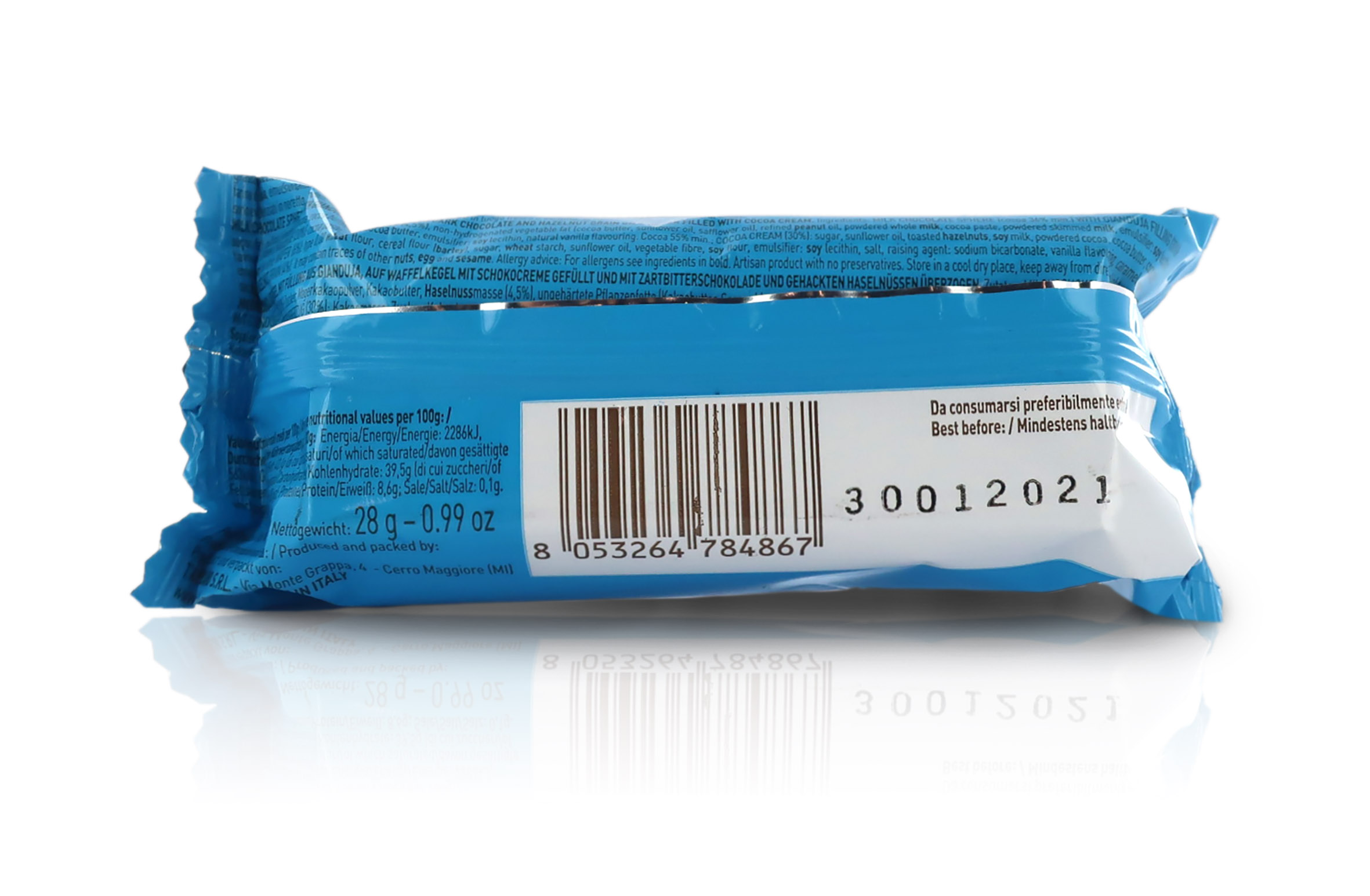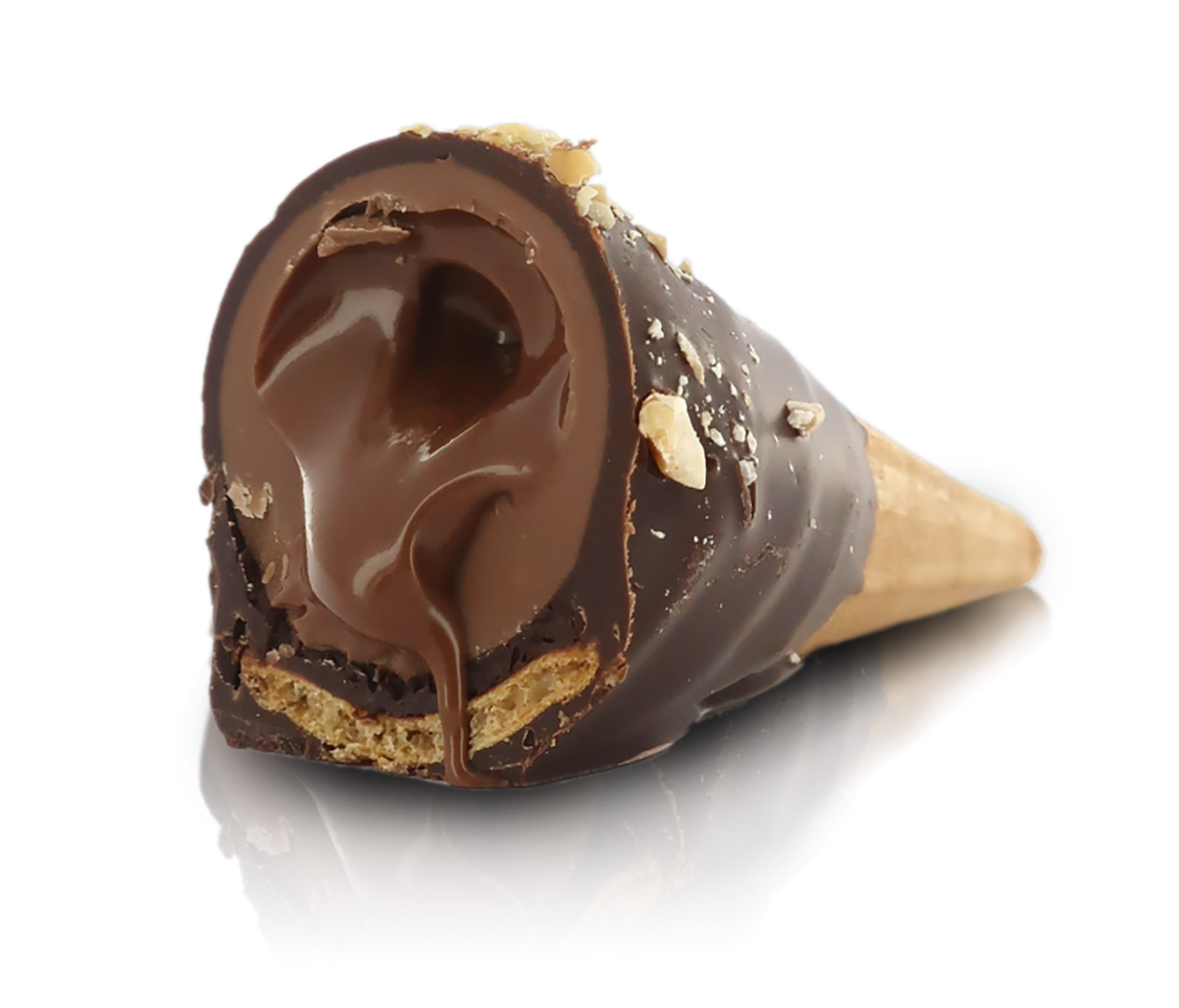 I mini coni al gianduia reinterpretano in chiave più golosa l'iconico cono gelato. Su una cialda croccante, ripiena di crema al cacao, trova posto una sfera di cioccolato al gianduia, con generosa copertura al cioccolato fondente. Incartati singolarmente, rappresentano uno sfizioso snack dolce.