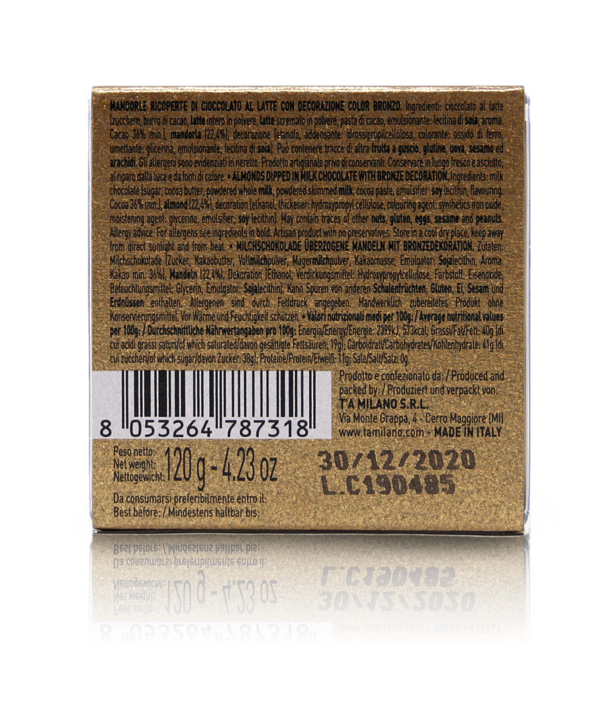 T'a Milano Dragées con mandorla ricoperta di cioccolato al latte 36% color bronzo, Linea Stardust - 120g
