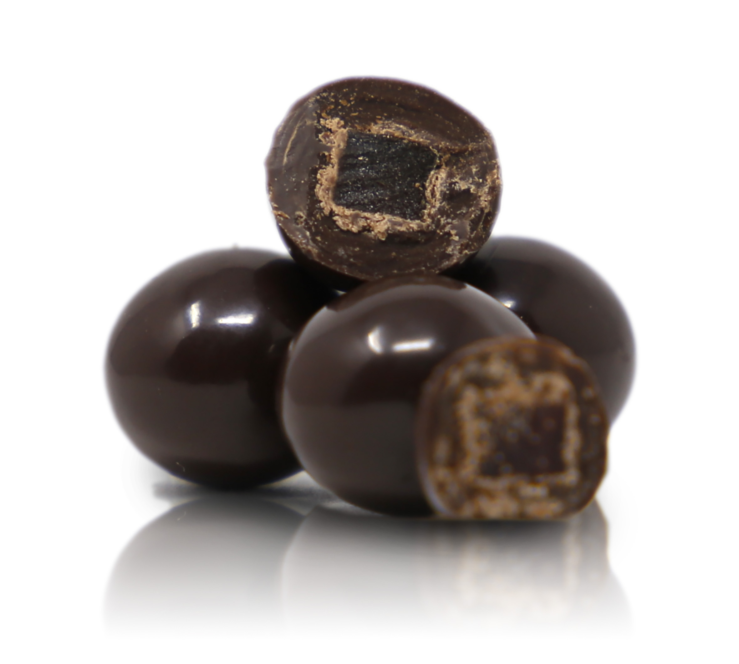 Grazie alla nota molto fresca della farcitura di frutta, questi dragées con ripieno alla fragola possono essere consumati tutto l'anno, pure in estate, rendendo il cioccolato fondente invitante anche nelle giornate più calde.