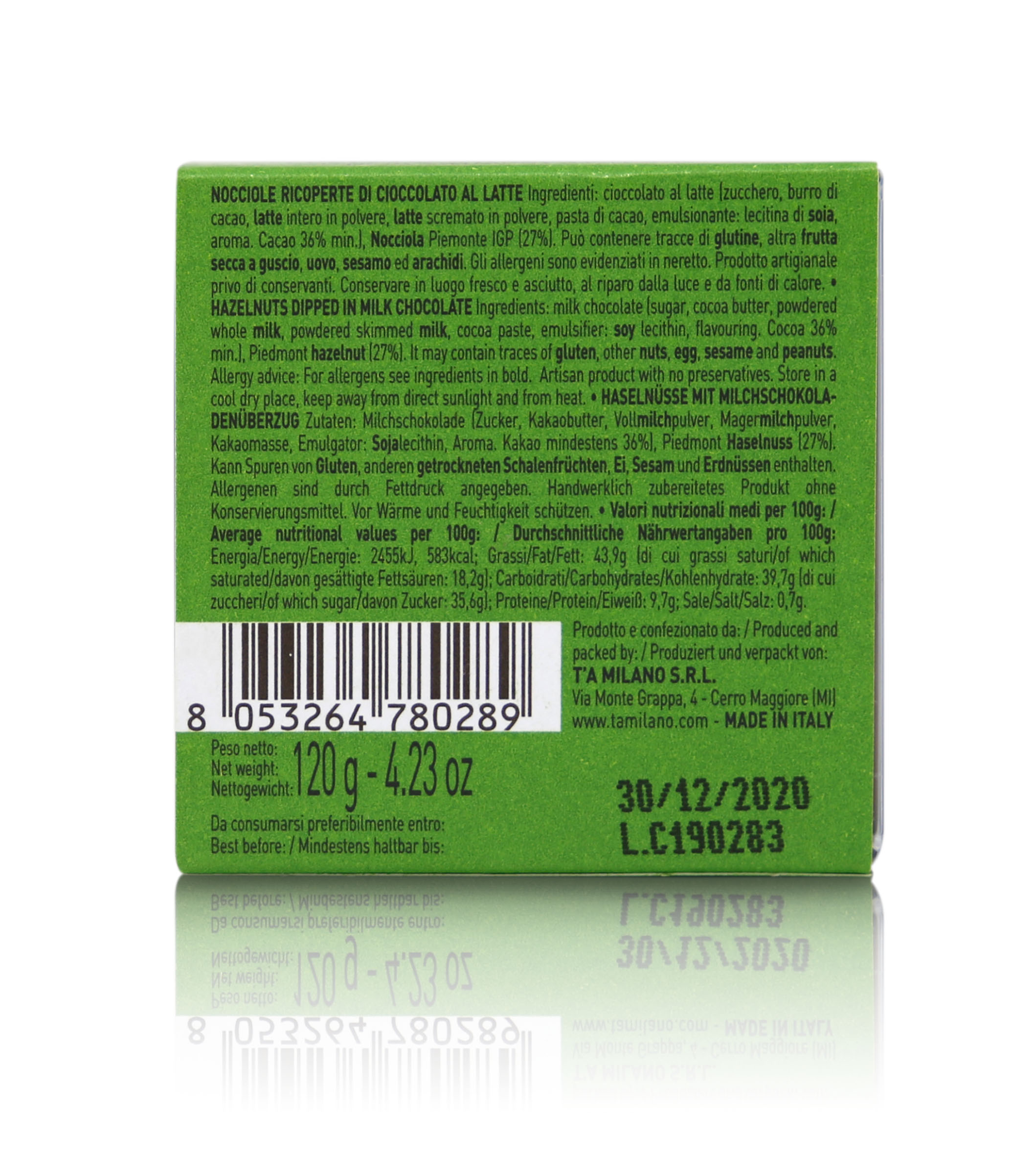 T'a Milano Dragées con Nocciola Piemonte IGP ricoperta di cioccolato al latte 36%, Praline con frutta secca - 120g